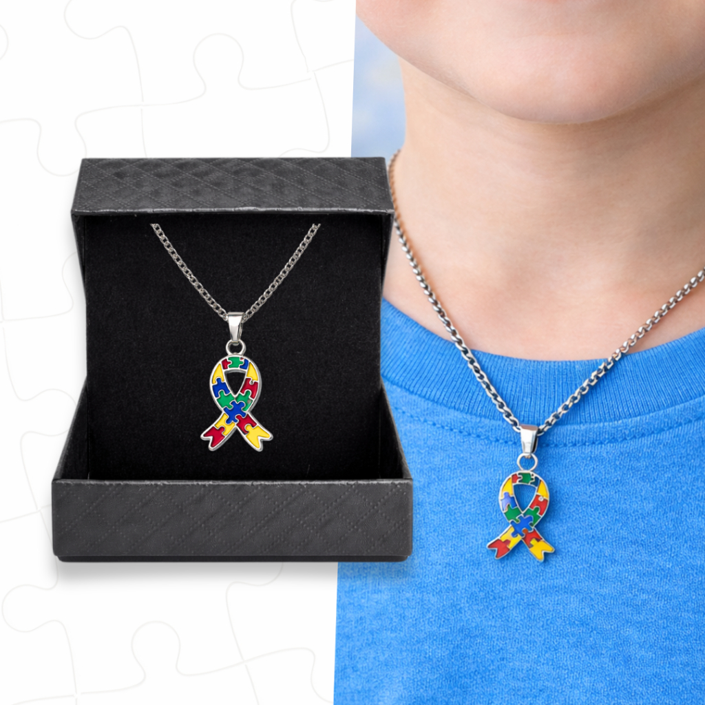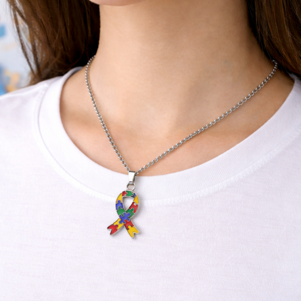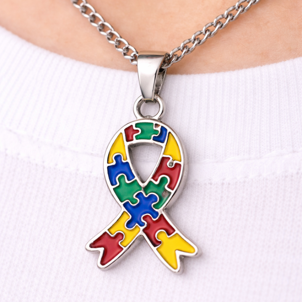 Colar Aço Inox Autismo Laço Quebra Cabeça Autista