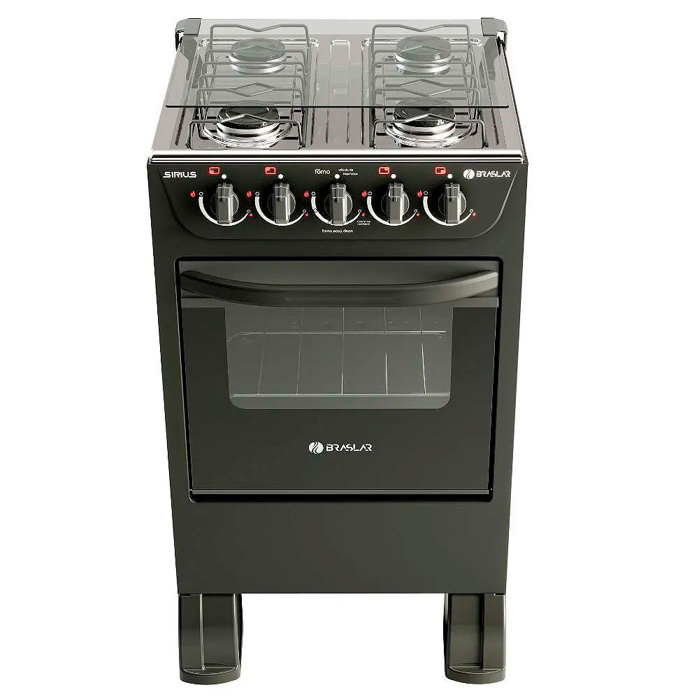 Fogão New Sirius 4 Bocas Manual Mesa em Inox Forno Easy Clean Braslar