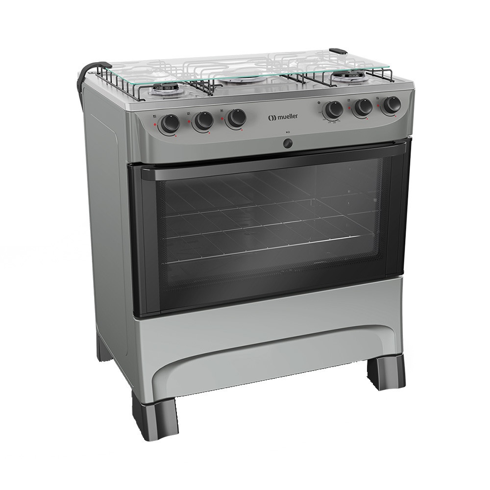 Fogão Mueller 5 Bocas MFI5BB Automático Mesa de Inox Forno 81,6 Litros