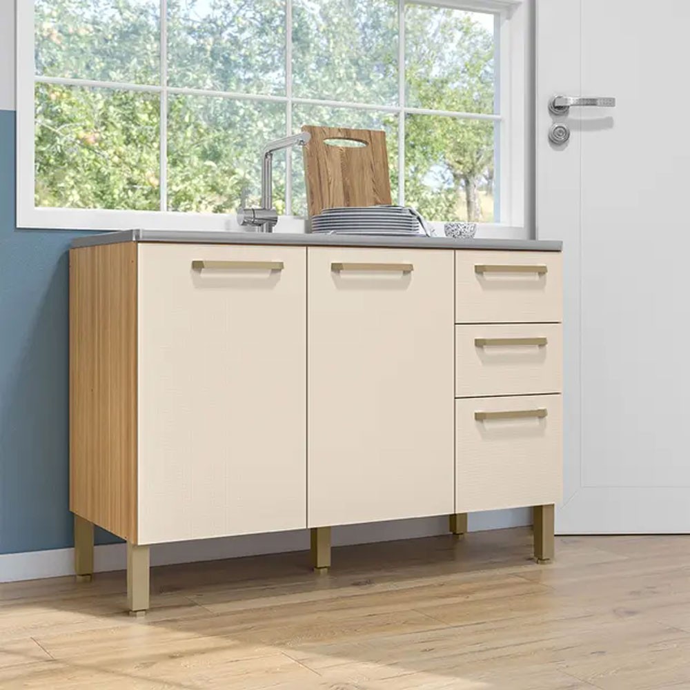Balcão sem Tampo 3 Portas 2 Gavetas 120cm Versalhes Kits Paraná