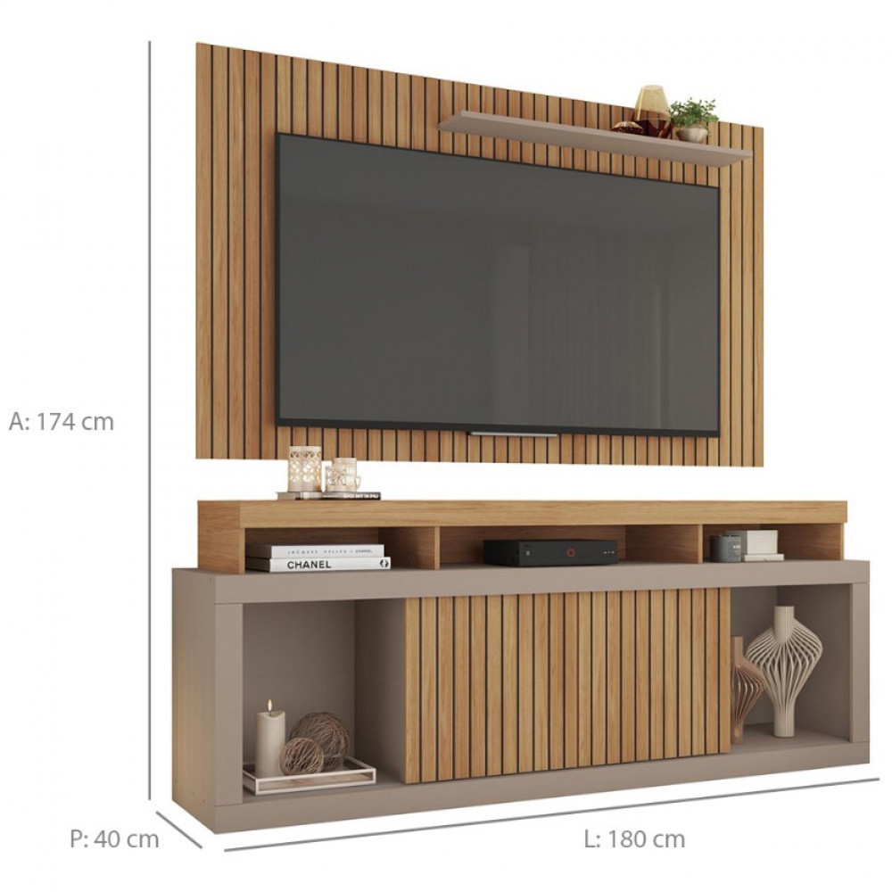 Bancada com Painel para TVs até 65 Polegadas MDP 2 Portas New Oscar Caemmun