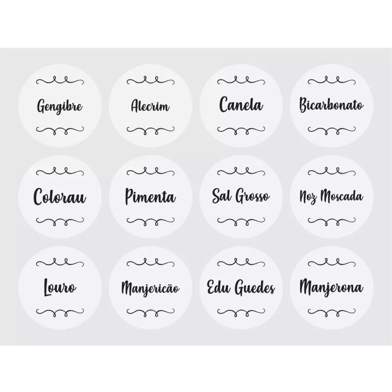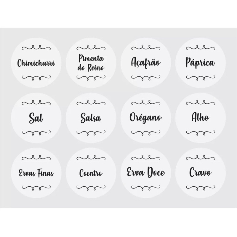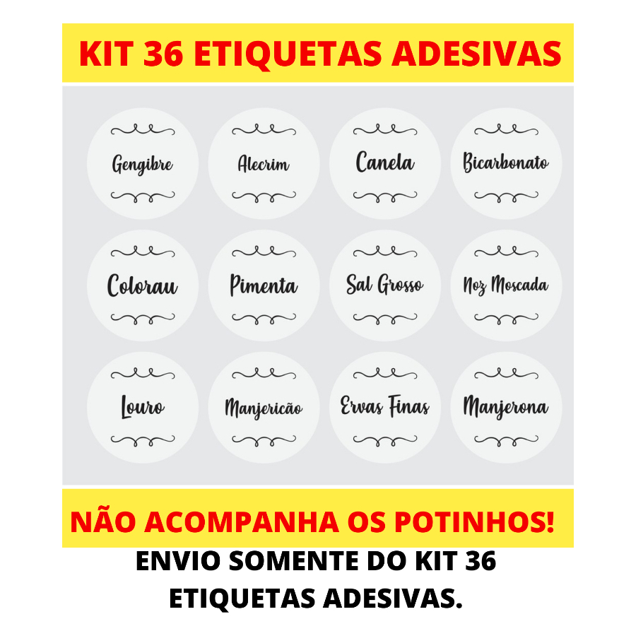 36 Etiquetas para Potes de Condimentos Temperos Mantimentos Transparente 3,8x3,8cm