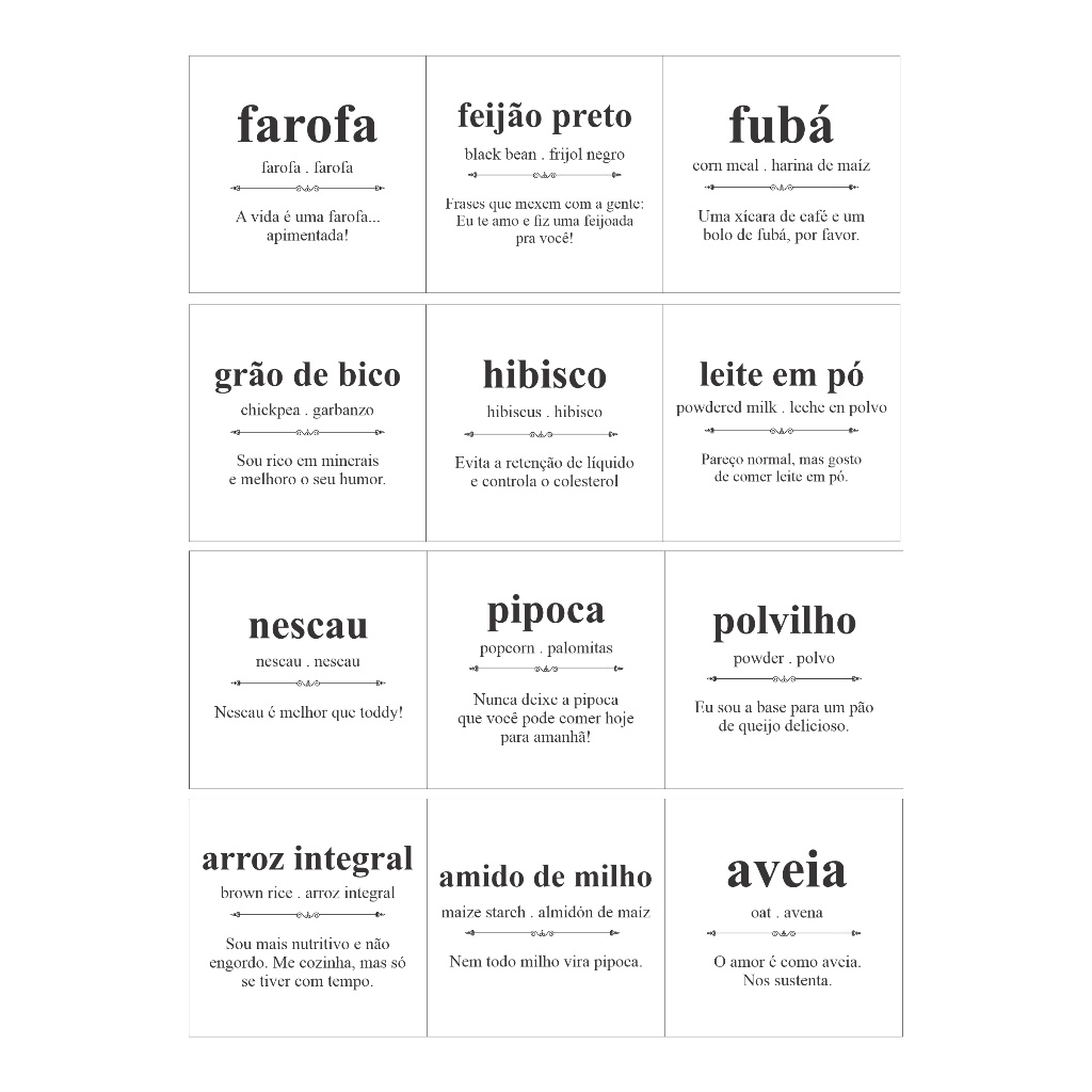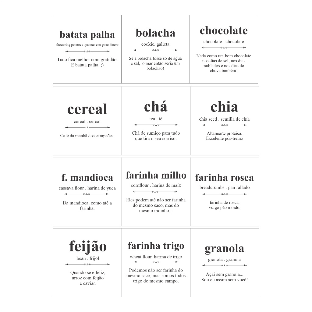 Kit 42 Adesivos Para Mantimentos Potes de Cozinha 7x7cm Modelo Dicionário Divertido Vinil Transparen
