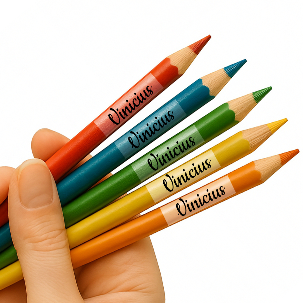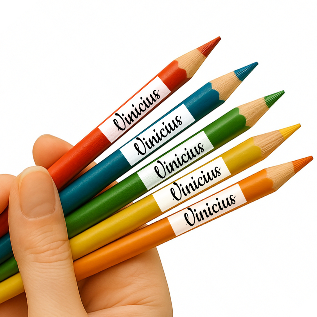 150 Etiquetas Escolares Personalizadas para Lápis e Cadernos - Branco ou Transparente