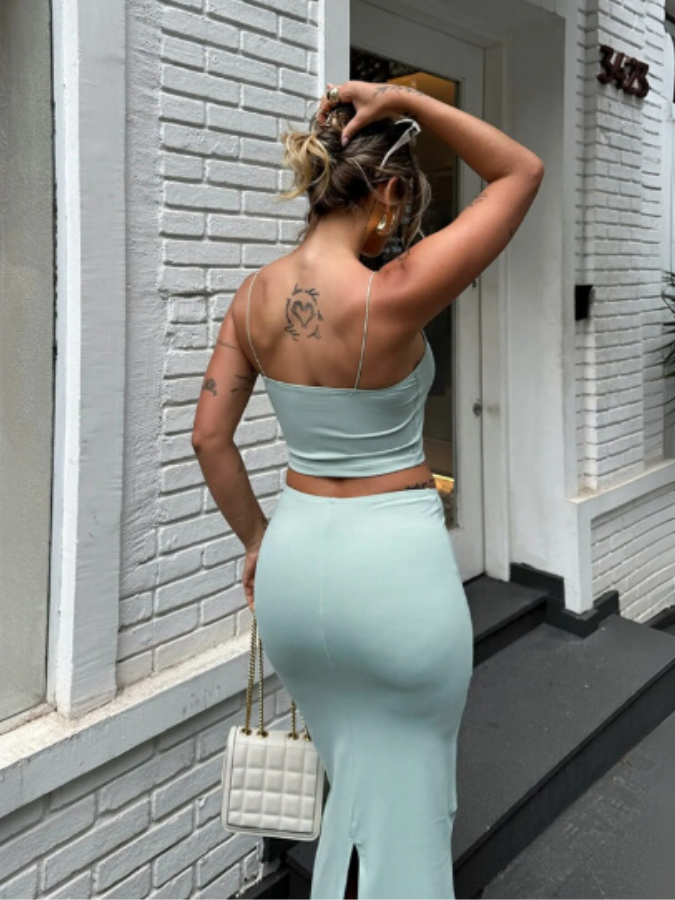 Saia Feminina Longa Gringa Estilo Longuete Com Fenda Grande Poliamida Modeladora