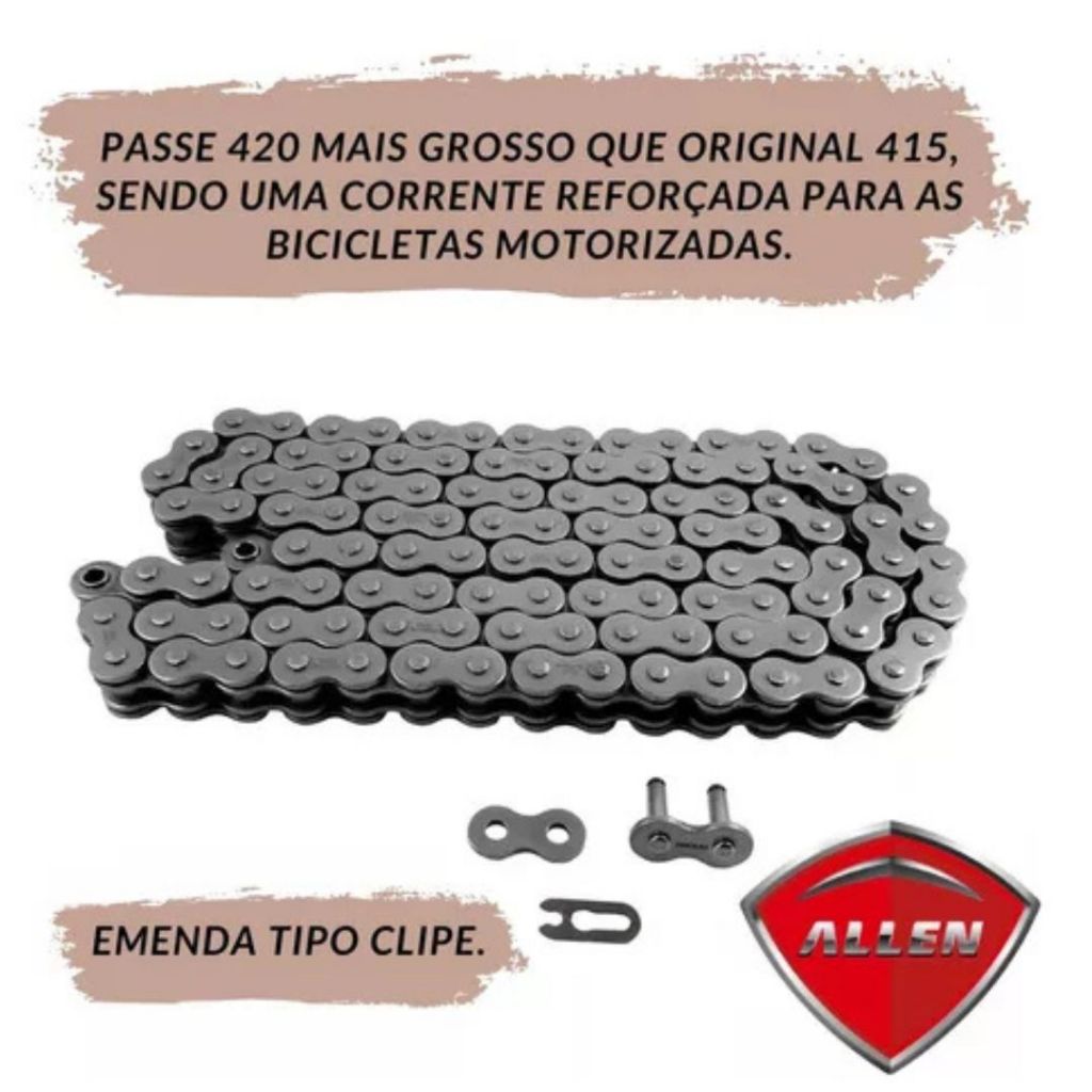 Corrente Bike Motorizada Moskito 80cc Rcc Reforçada 420h