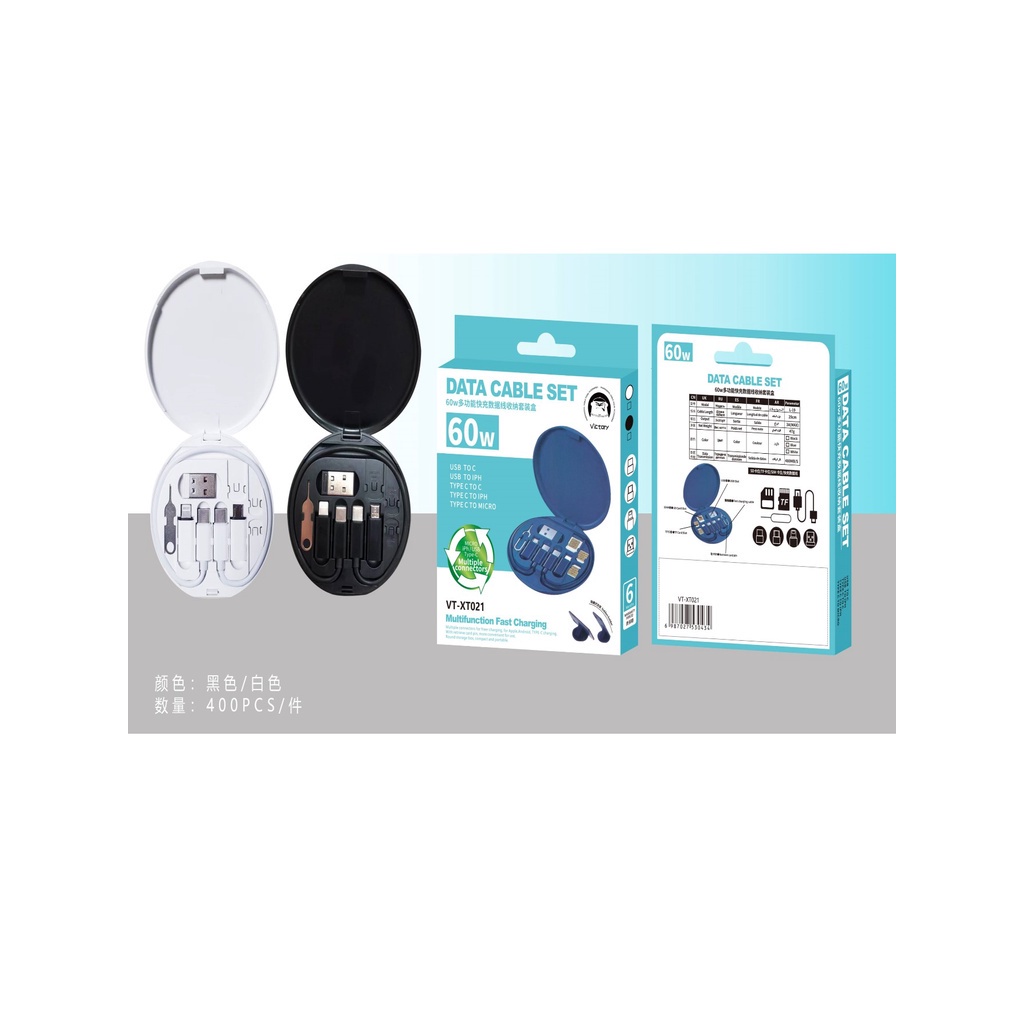 Conjunto de adaptador de cabo de carregamento múltiplo 6 em 1 USB C para USB