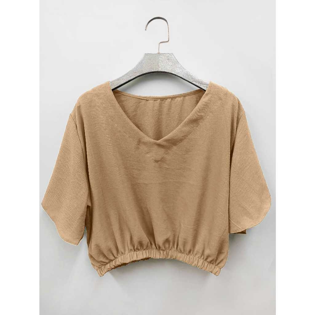 Blusa Feminina Duna Com Elastico na Cintura Soltinha Manga Curta Casual
