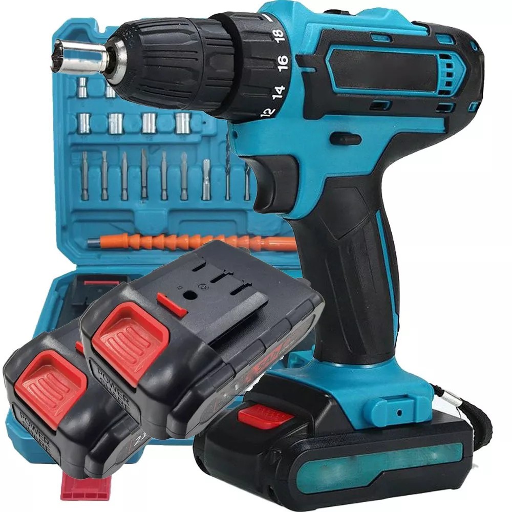 Parafusadeira 2 Baterias 48v Furadeira Maleta 24pcs Pronta Entrega Cor AZUL/AMARELO