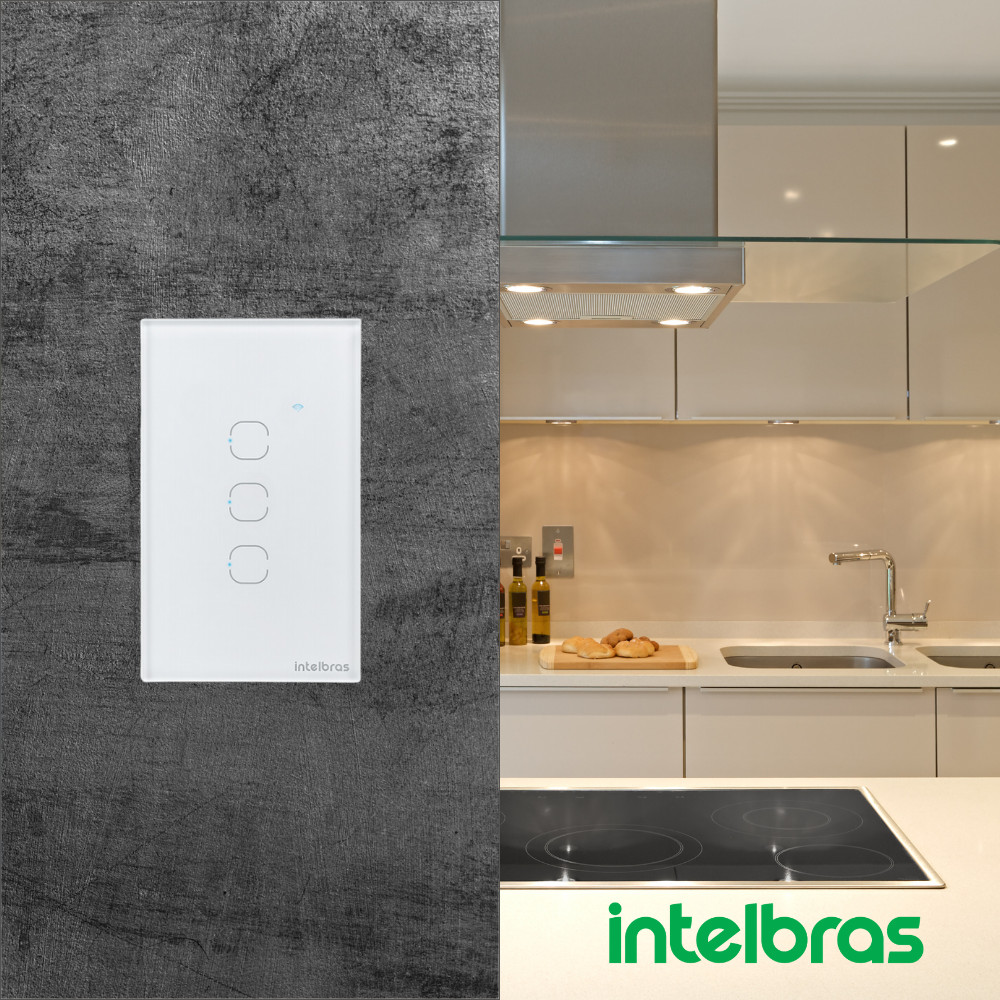 Interruptor Inteligente Smart Touch Wi-fi 3 Teclas Ews 1003 Branco Intelbras Multifuncional Tomada Voz Alexa Google