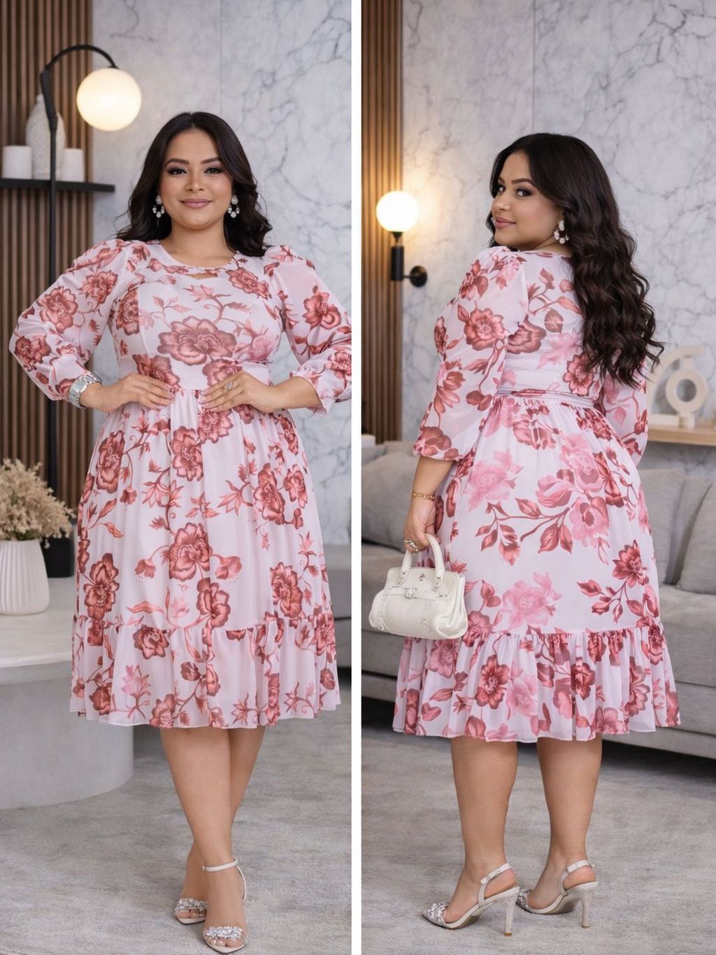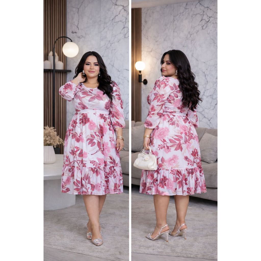 Vestido Moda Feminina Evangelica Plus Size Congresso Midi Congresso Elegante Modesto Culto Delicado Forrado