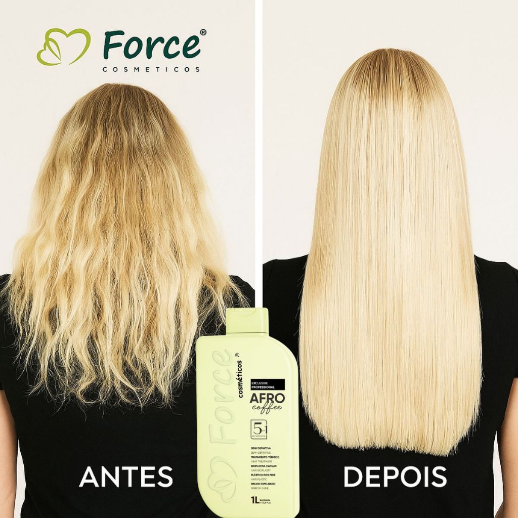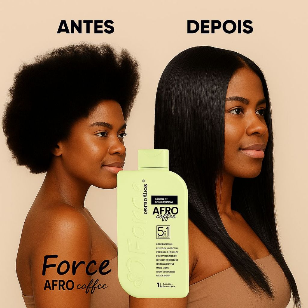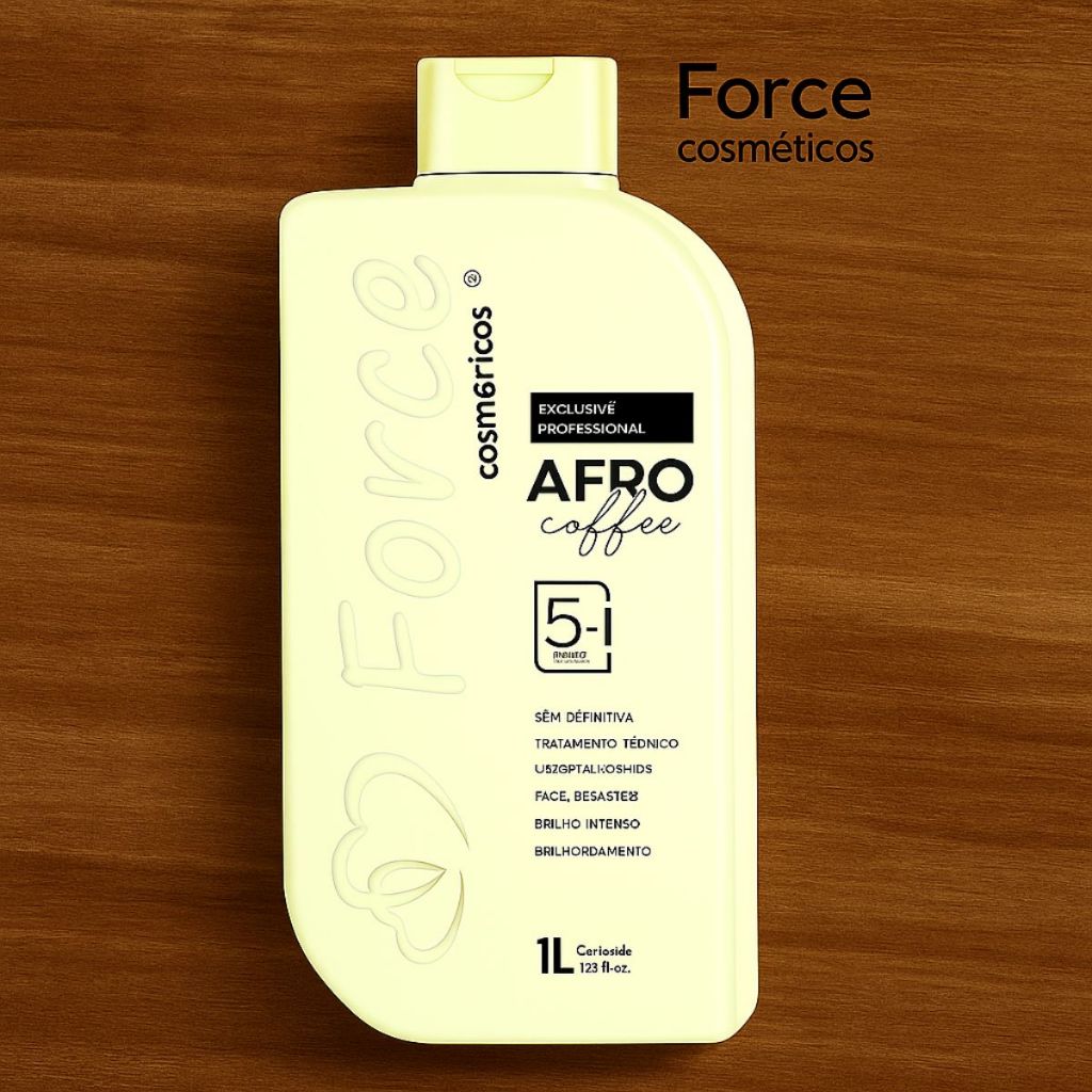 Ativo Escova Semi Definitiva Cabelos Afro Coffe 5 em 1 Force de Frizz Cosméticos 1 Litro