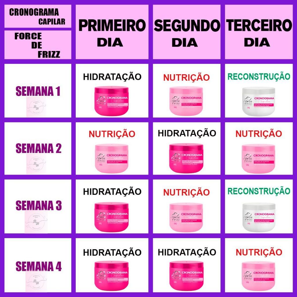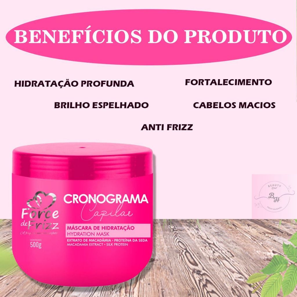 cronograma capilar force de frizz kit com 3 mascaras nutrição + reconstrução + hidratação 500gr cada