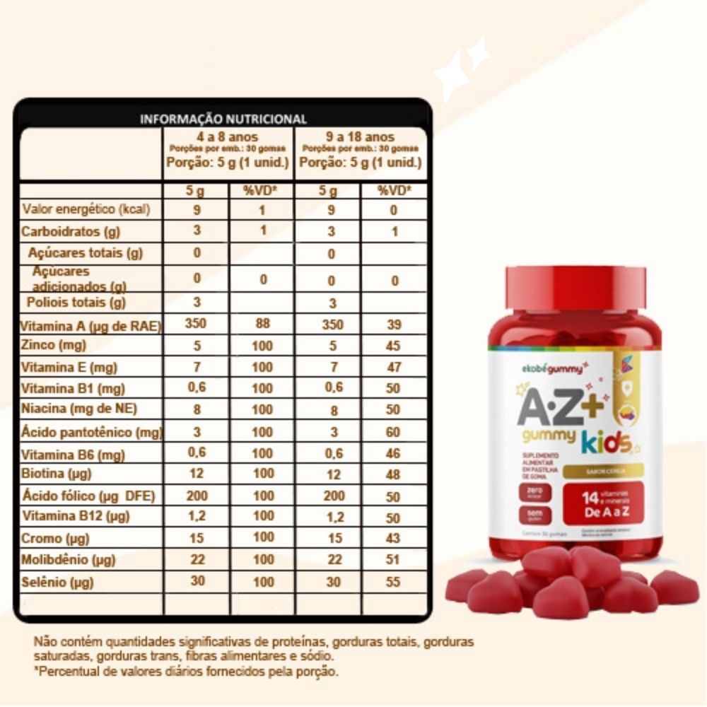 Kit 2 Gummy Kids Multivitamínico AZ 30 Gomas sem Açúcar para Crianças Marca Ekobé.