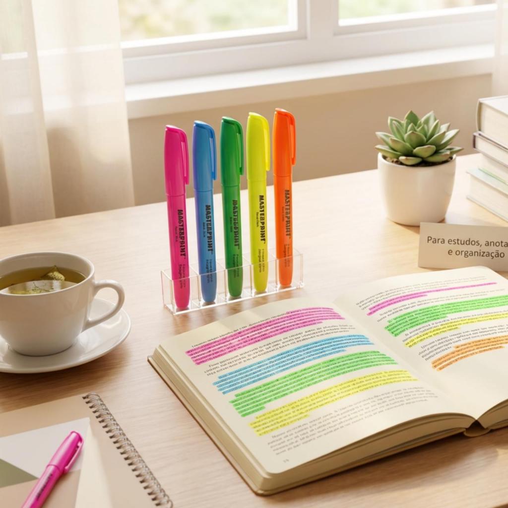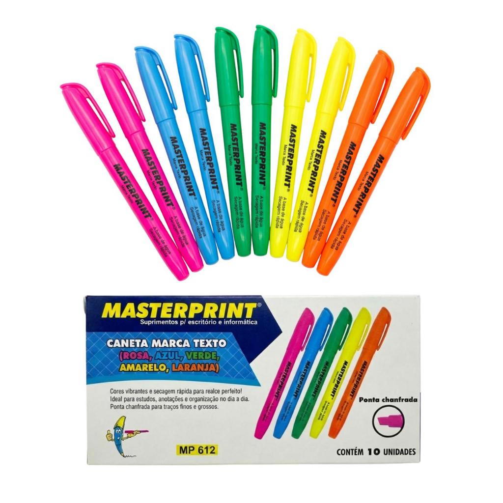Marca Texto Kit 10 (5 Cores) Caneta Marca Textos Masterprint