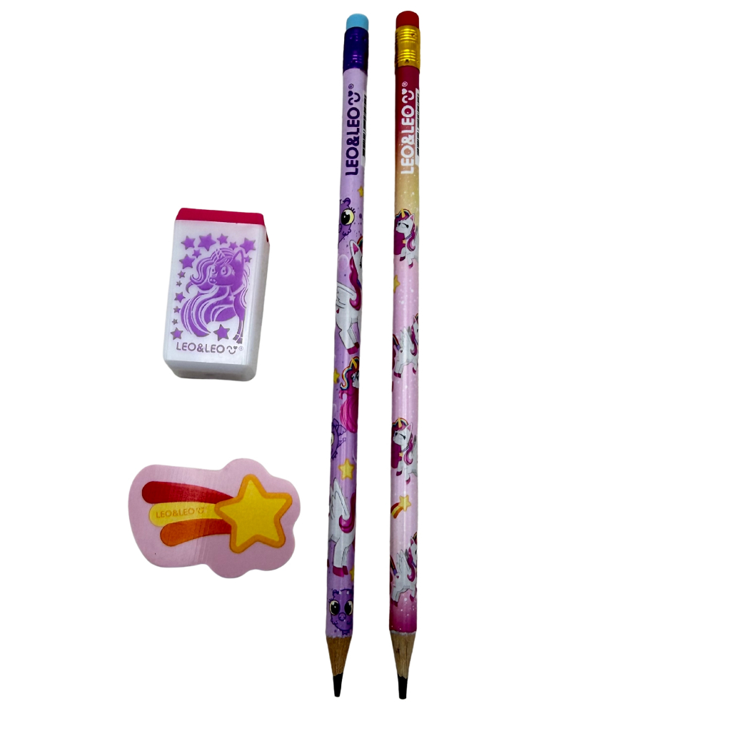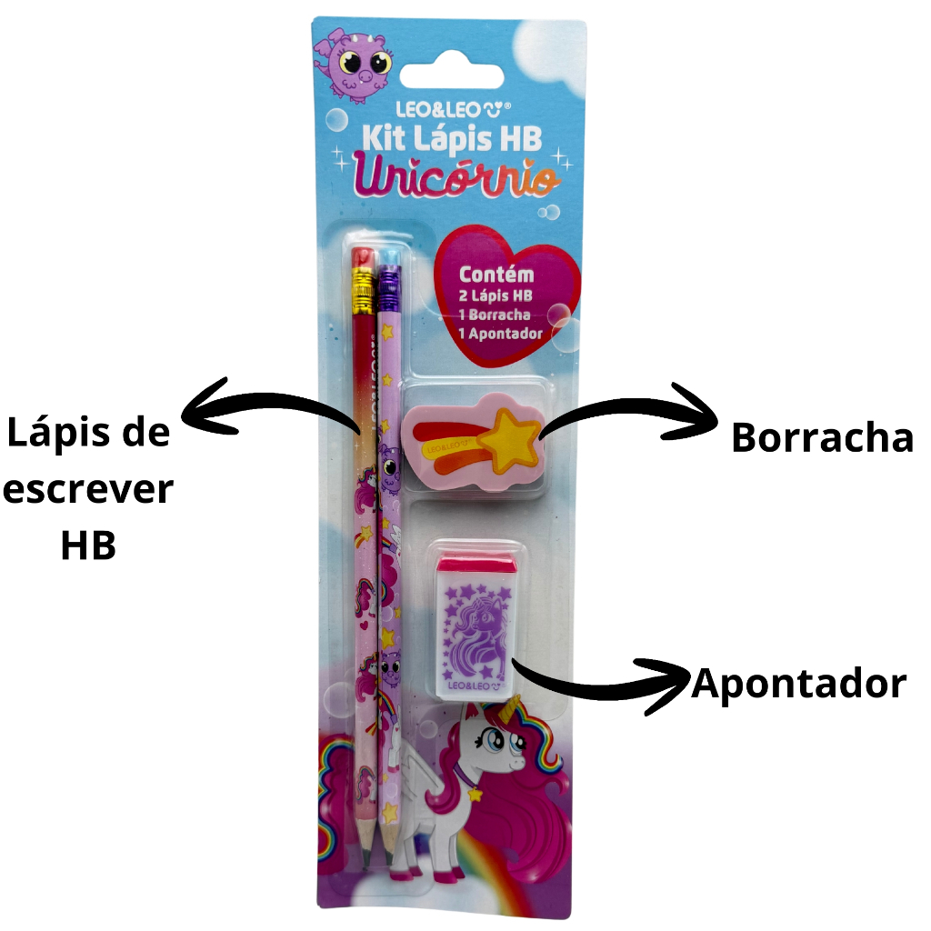 it Lápis HB Unicórnio Leo&Leo com Borracha e Apontador – Material Escolar Fofo Infantil