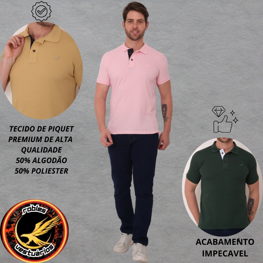 Polo Camisa Masculina ROBLES P/M/G/GG Tecido Piquet 30.1
