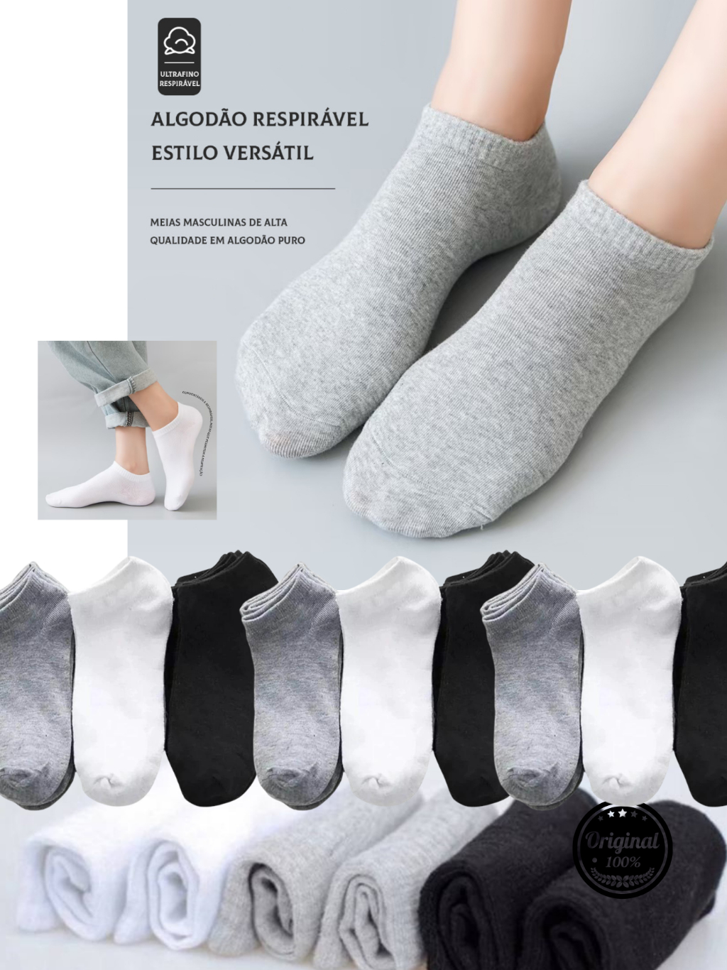 Kit 12 Pares de meia soquete de algodão unisex Cano curto original