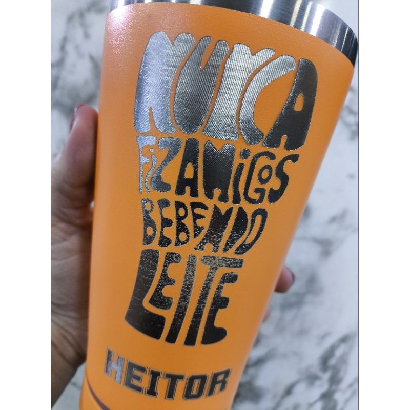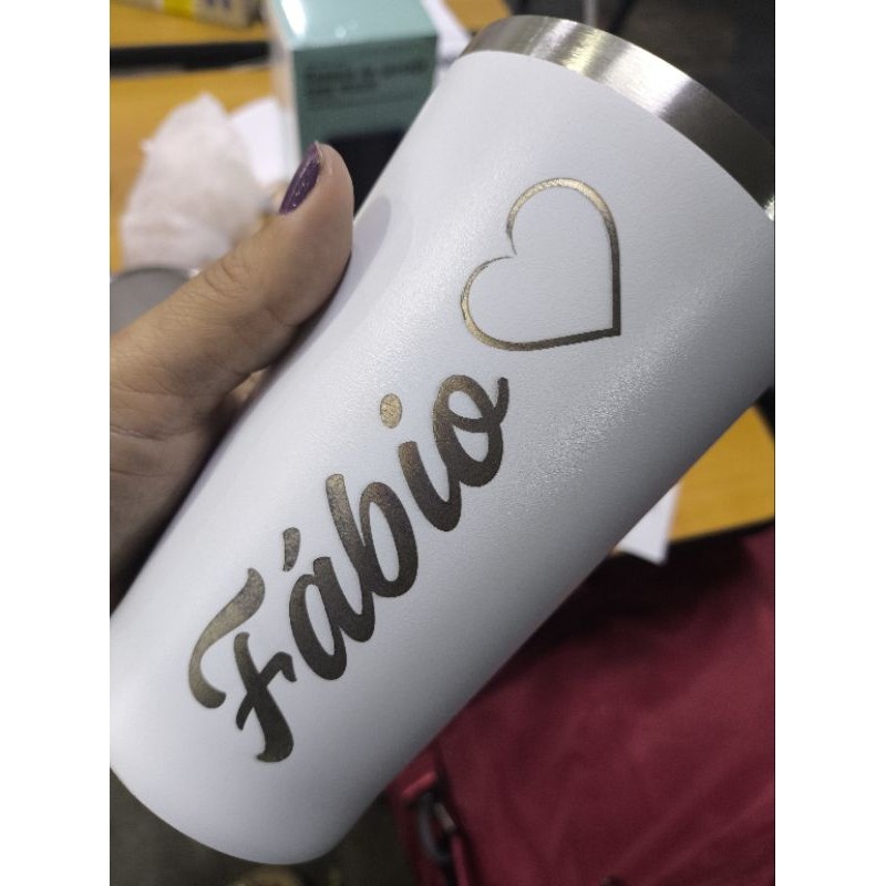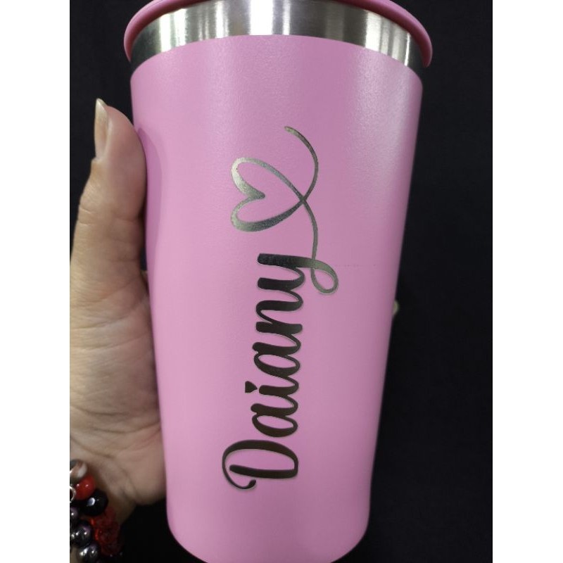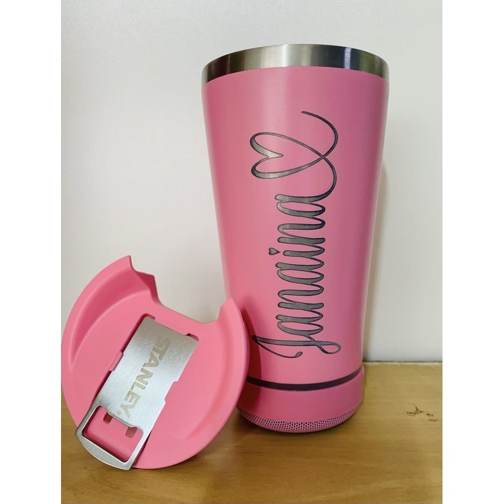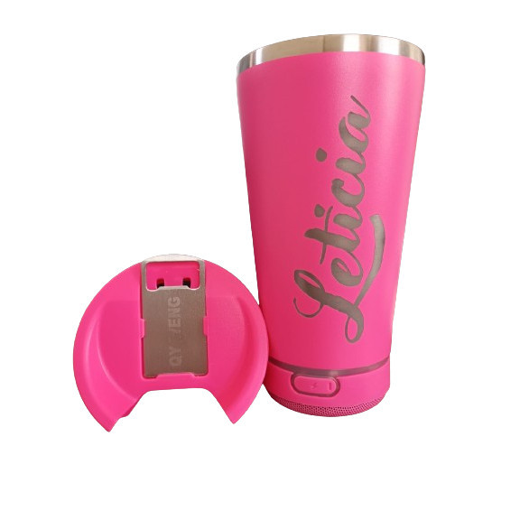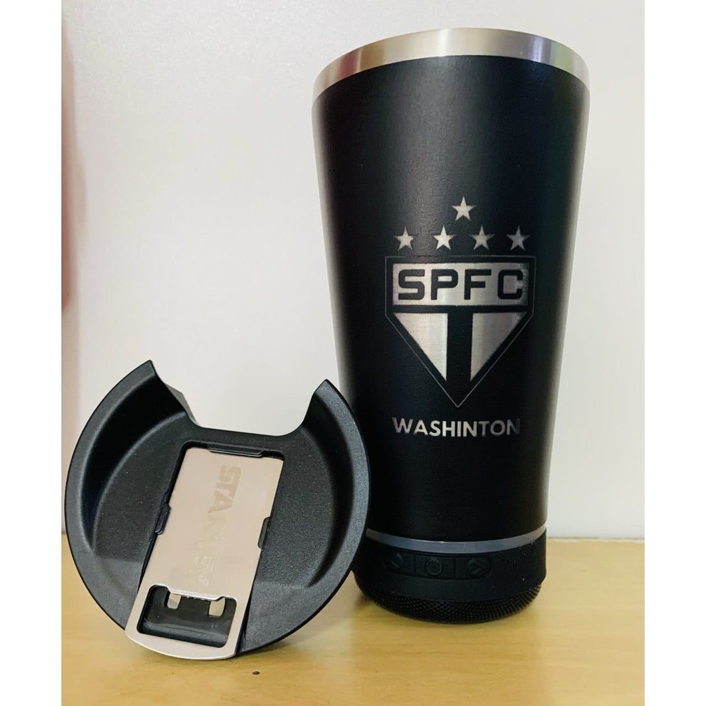 Copo térmico Personalizado inox com tampa abridor e caixa de som com bluetooth Led 420ML