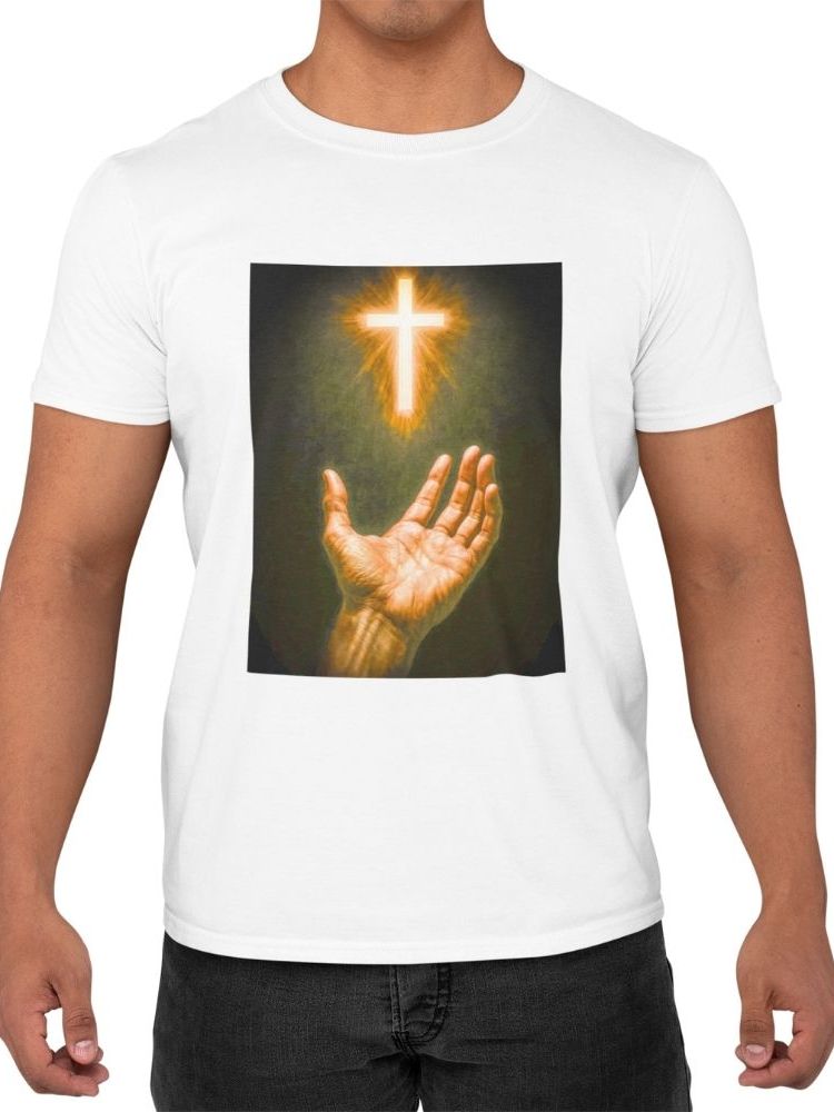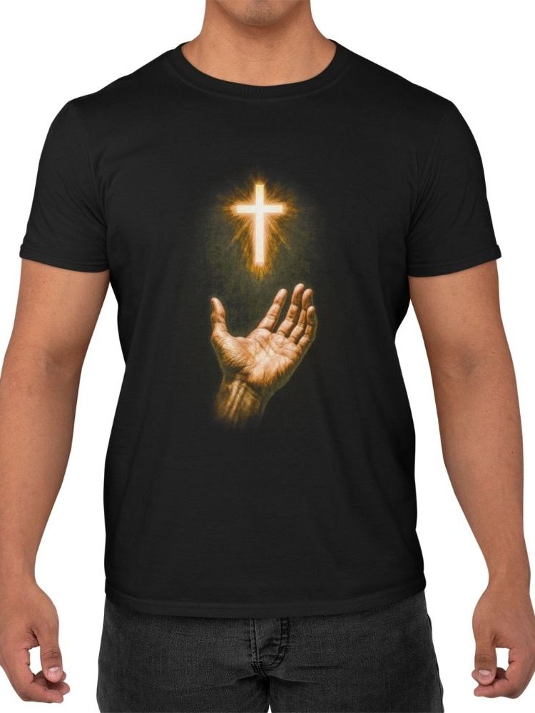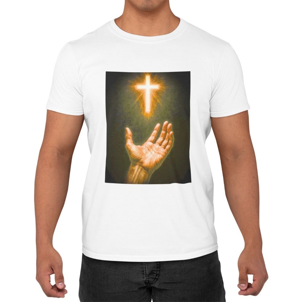 Camiseta Camisa Premium Unissex Cristã 100% Algodão Religiosa Mão e Cruz