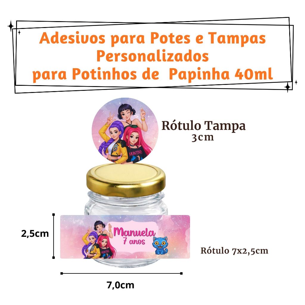 Rótulos Adesivos para Nuttela e Papinhas e Tampas 40ml | Lembrancinhas | Festa | Personalizado | Vários Temas