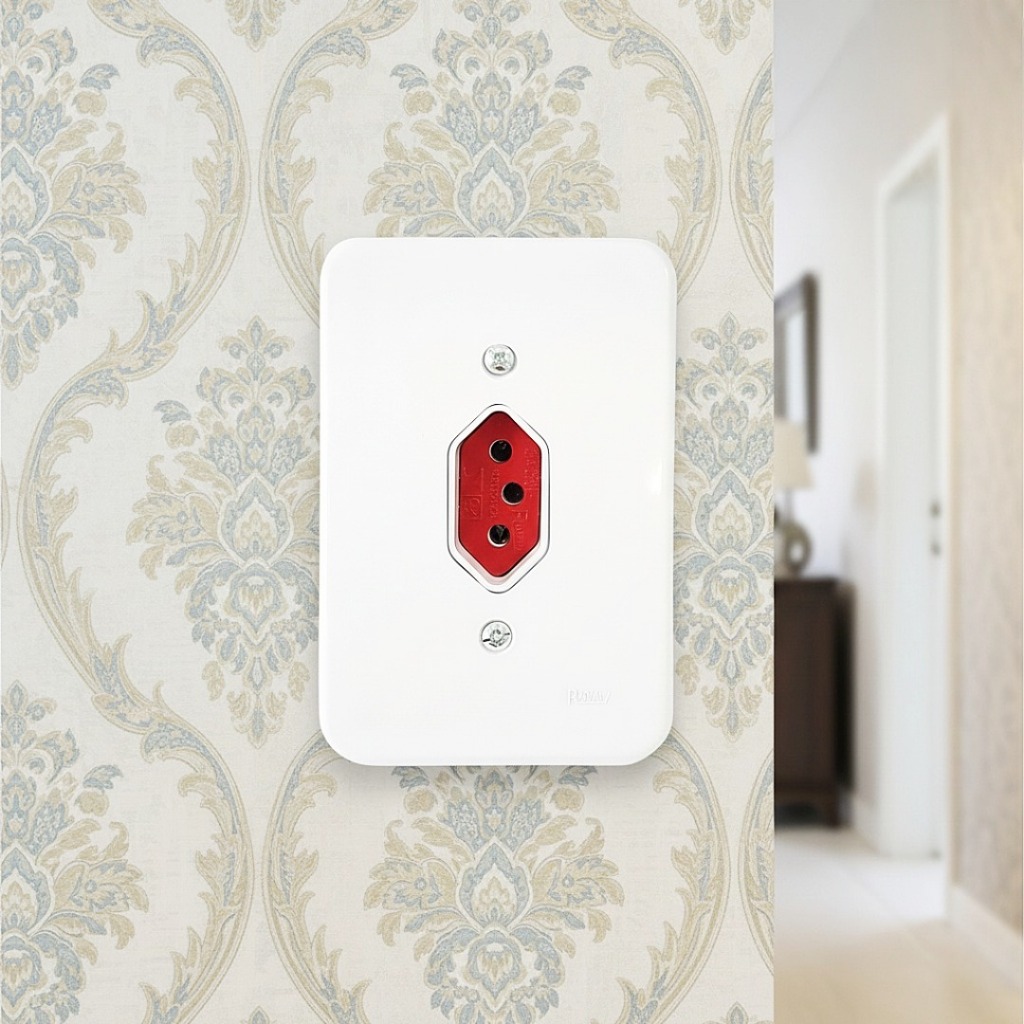 Kit 5un Tomada 20 amperes Vermelha Simples De Parede Completa Bivolt