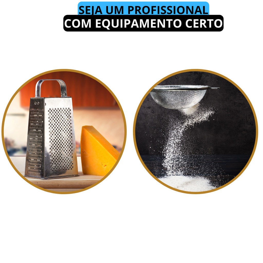 Kit Ralador Peneiras Inox Coador Fatiador 4 Faces Alimentos Utensilios Cozinha