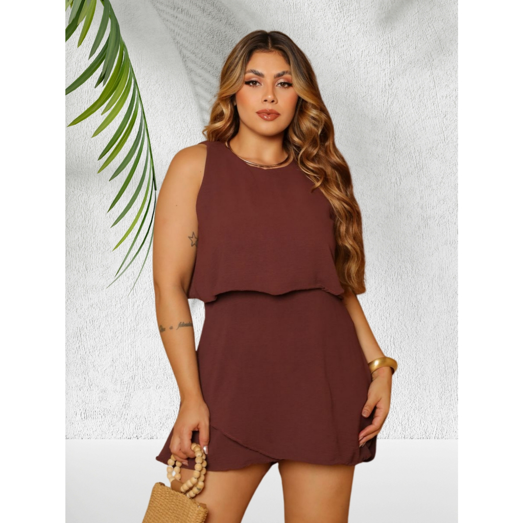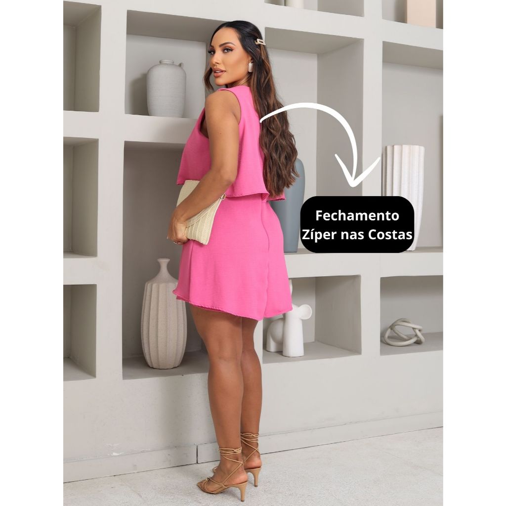 Macaquinho Feminino Curto Short-saia em Camadas Zíper nas Costas Duna