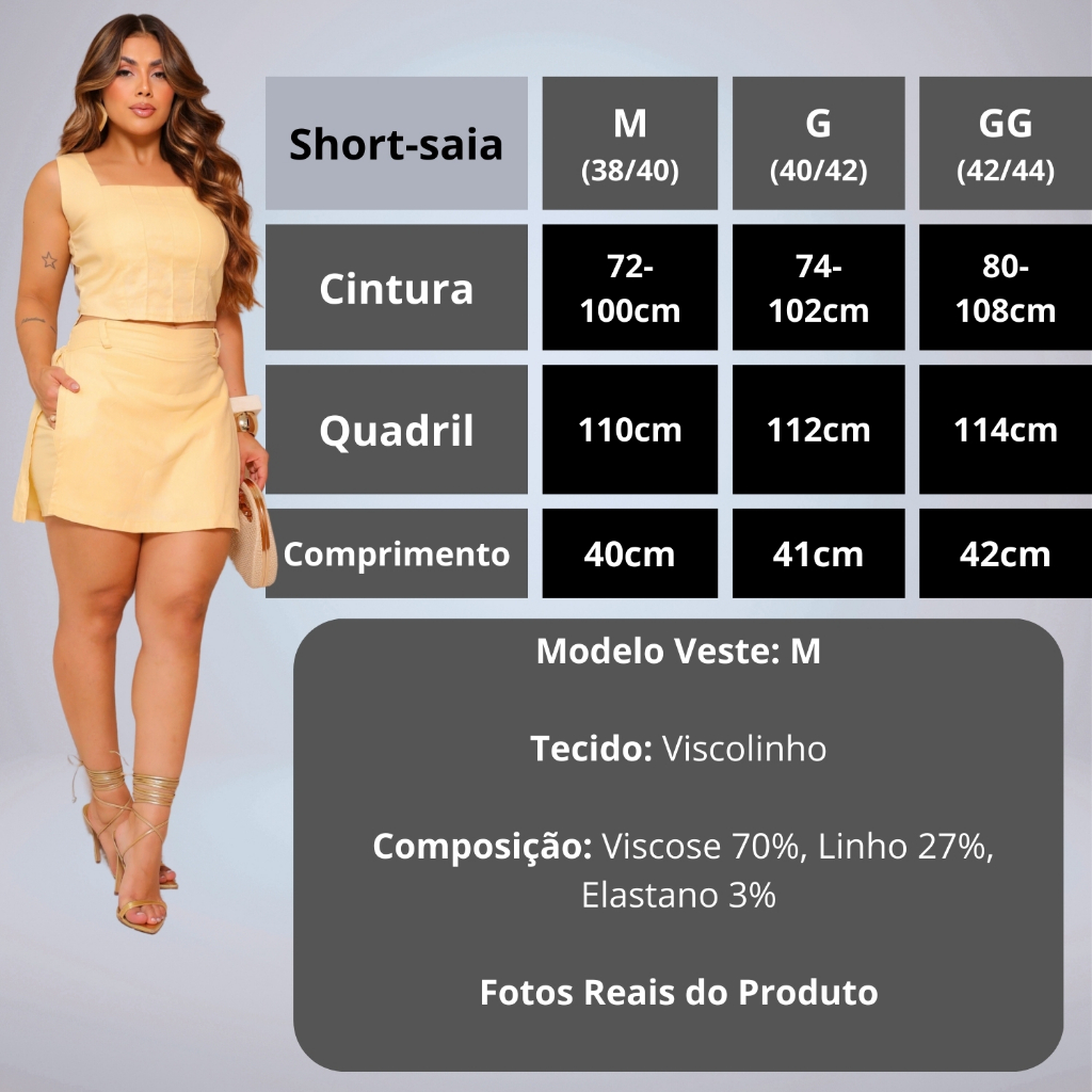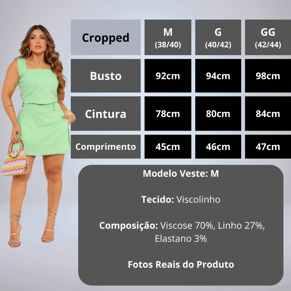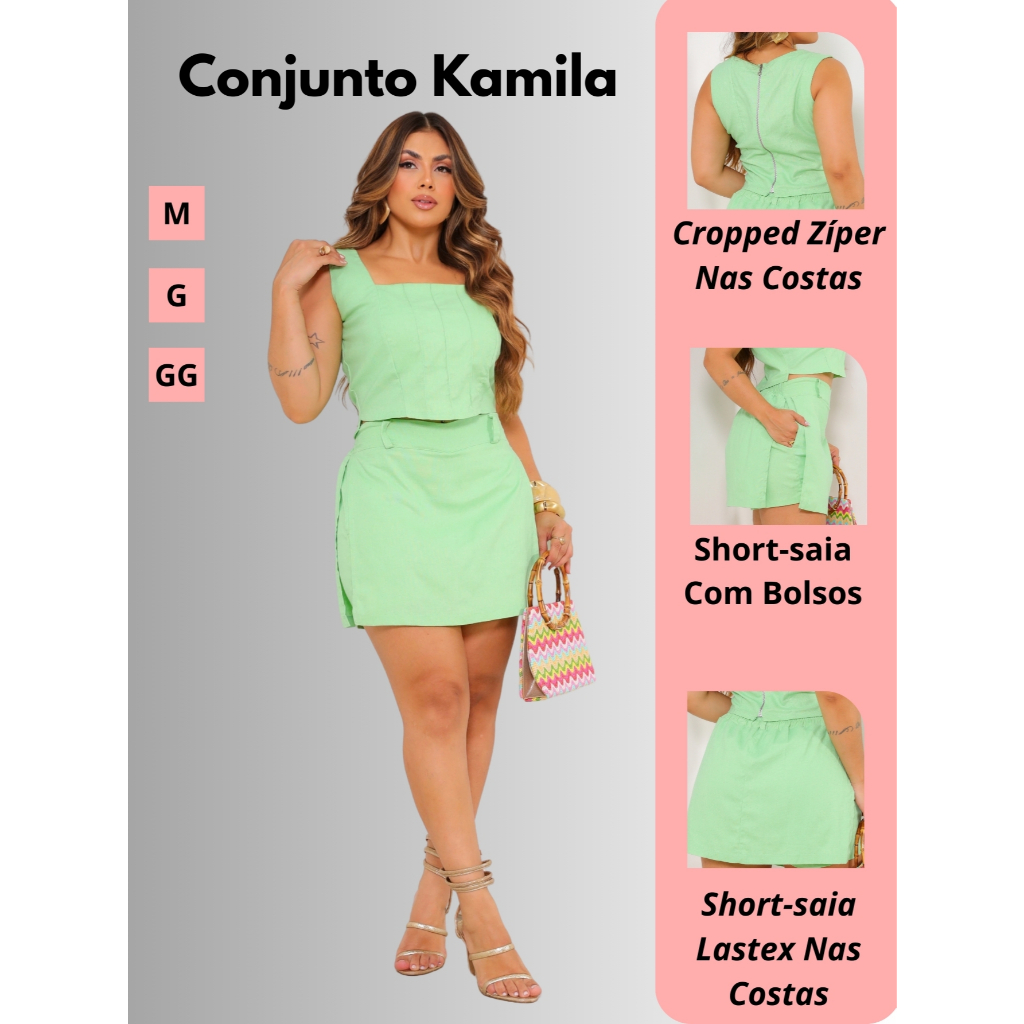 Conjunto Feminino Cropped Zíper Nas Costas E Short-saia Com Bolsos