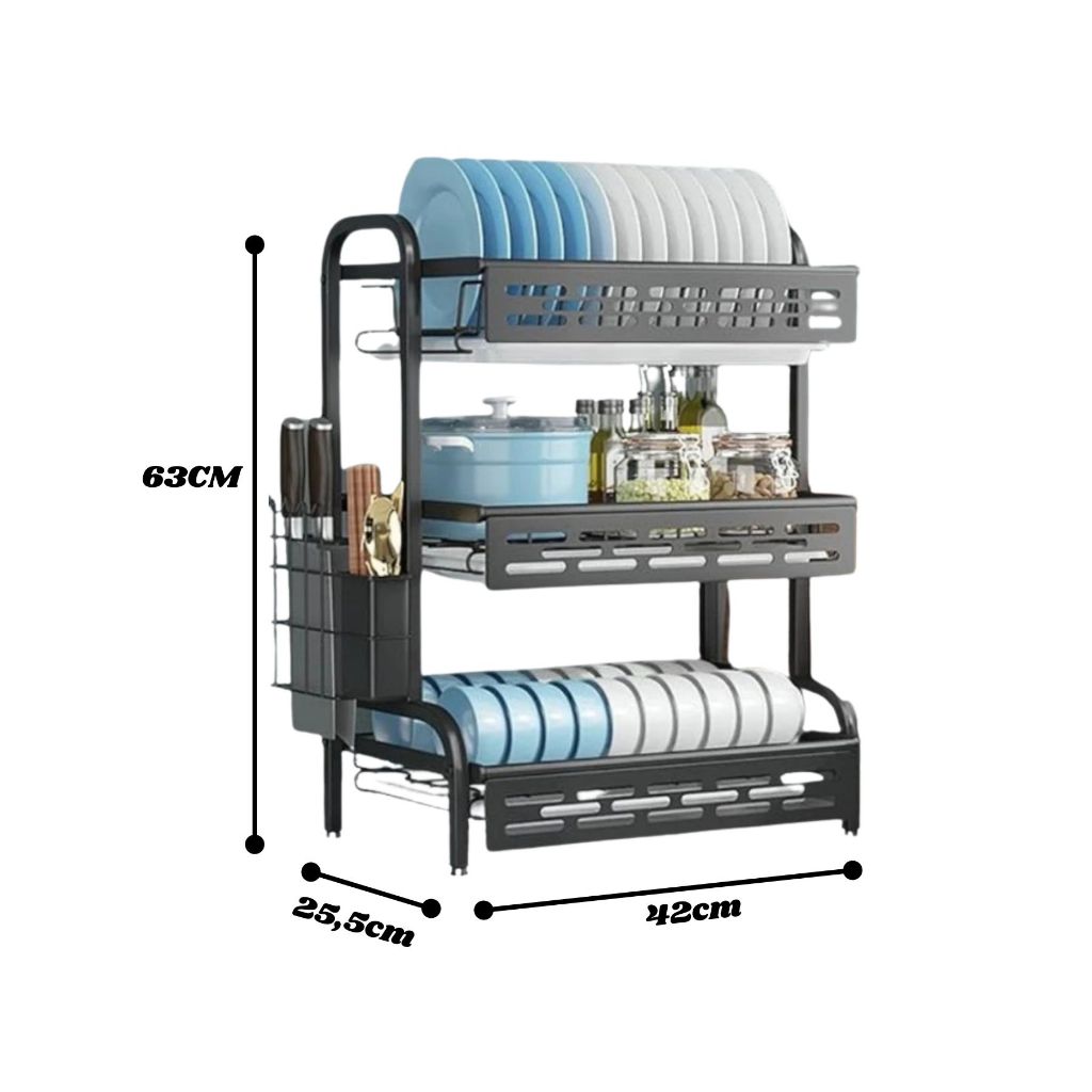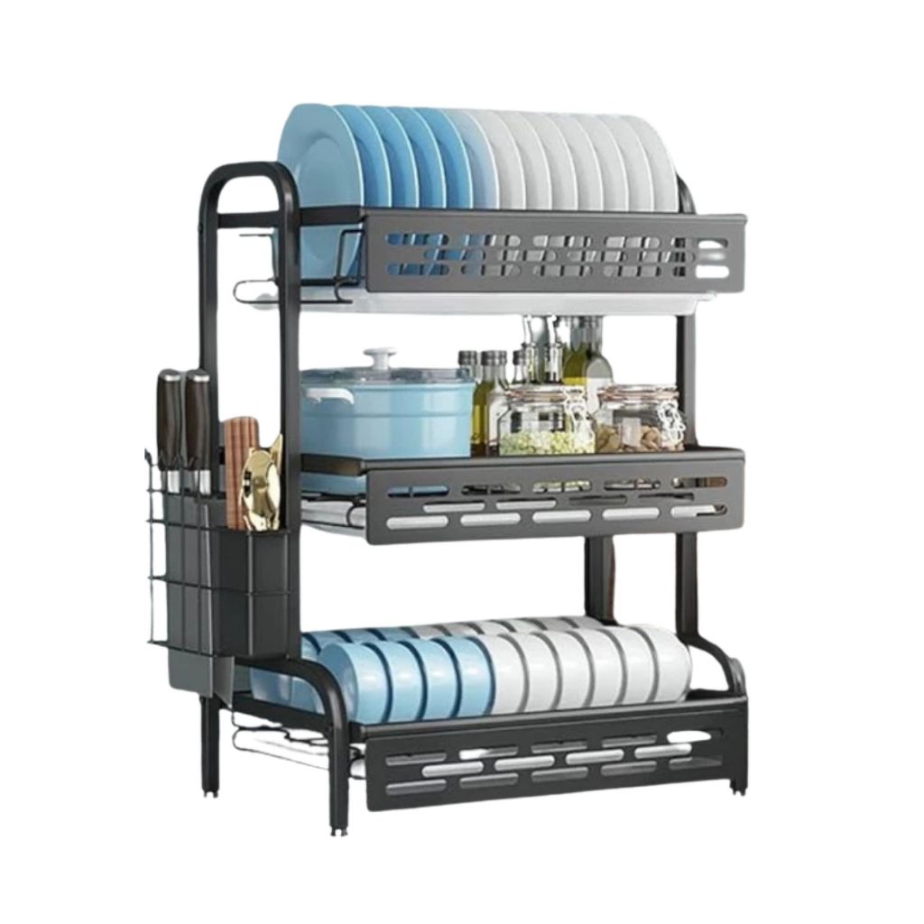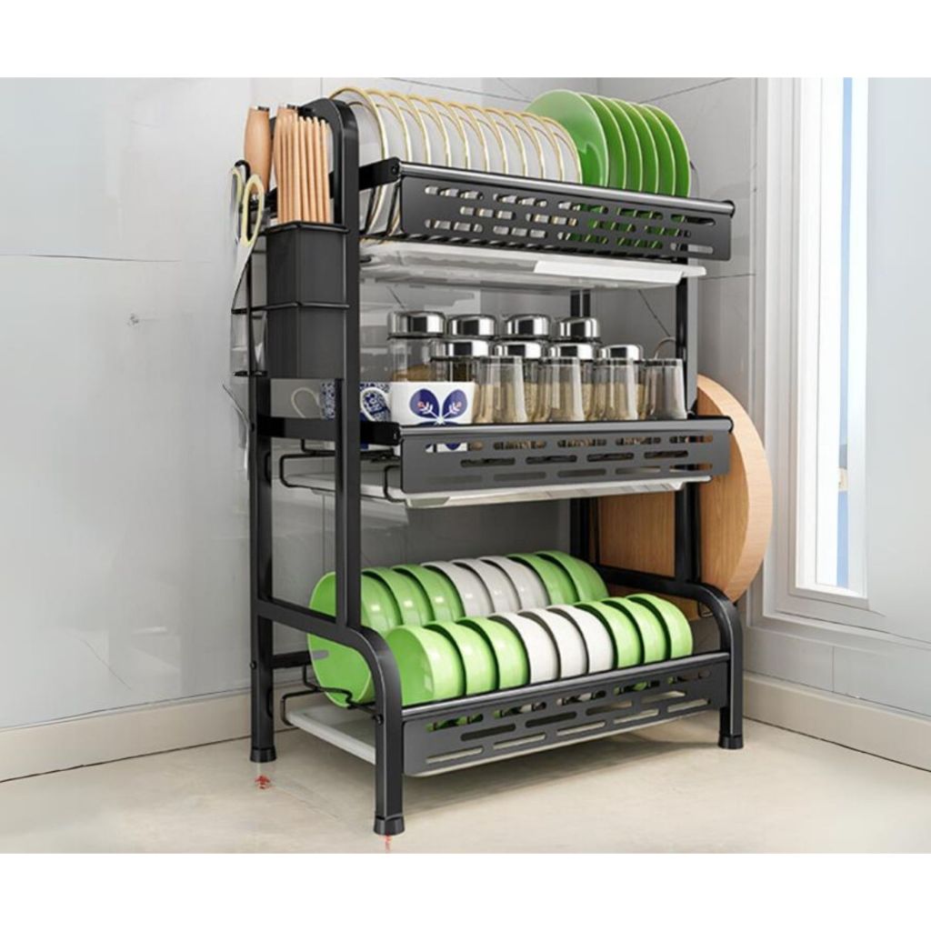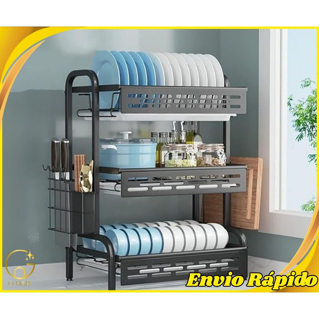 Escorredor de Louça Rack Preto 2 3 Andares Grande Organizador Porta Talheres Aço Carbono