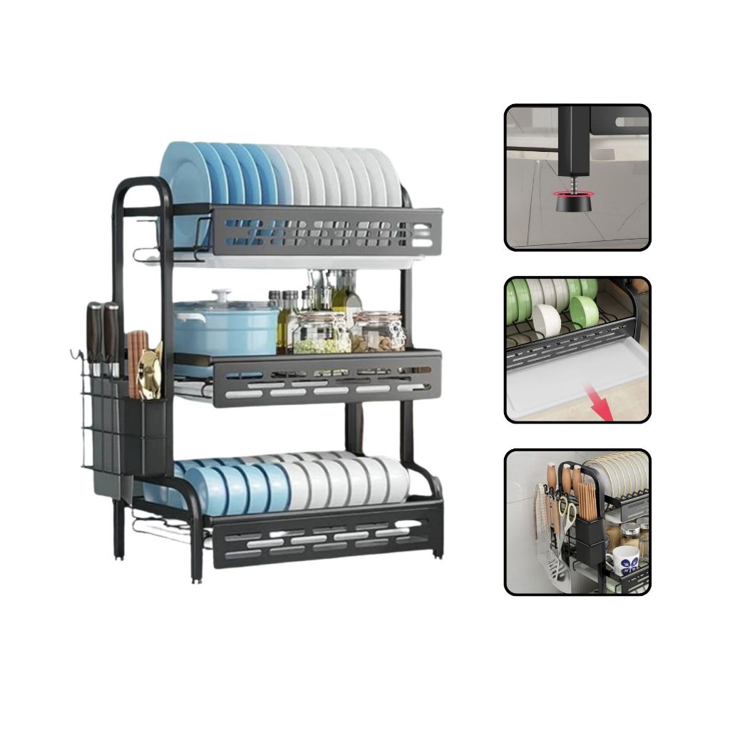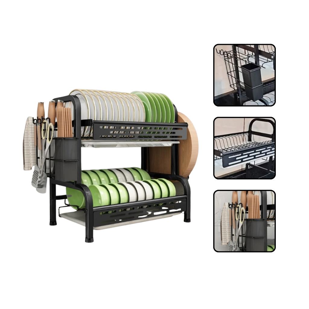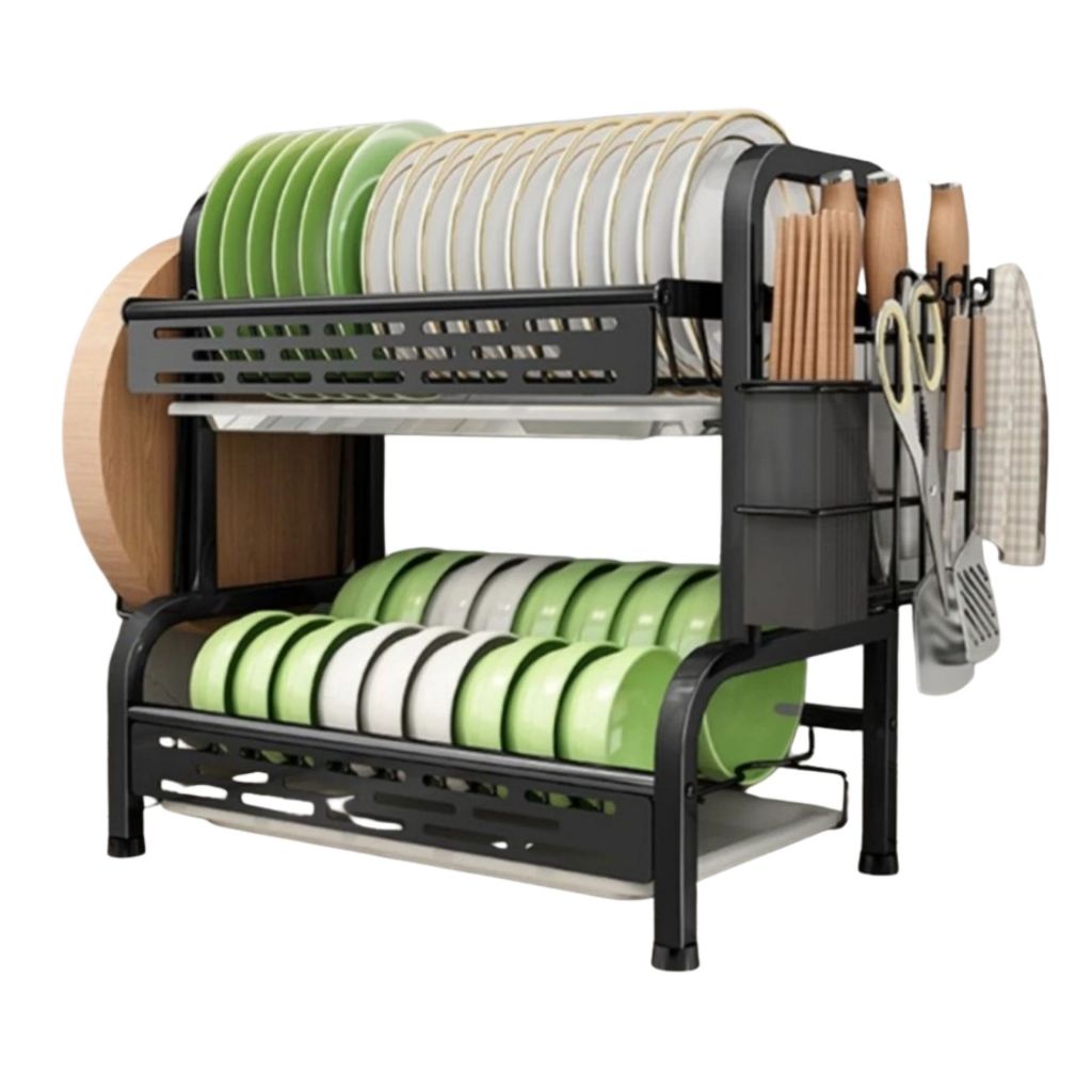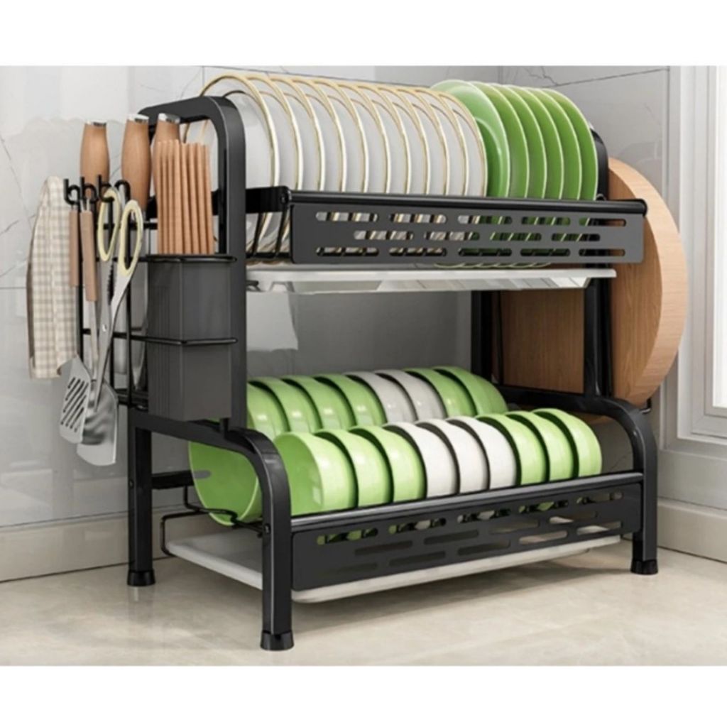 Escorredor de Louça Rack Preto 2 3 Andares Grande Organizador Porta Talheres Aço Carbono