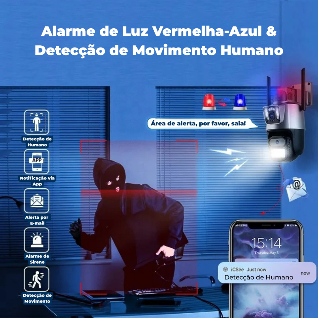JL PROTEC 4K 8MP Câmera de Segurança 2 Lentes Com Audio e Microfone Câmera 355 Graus Wifi