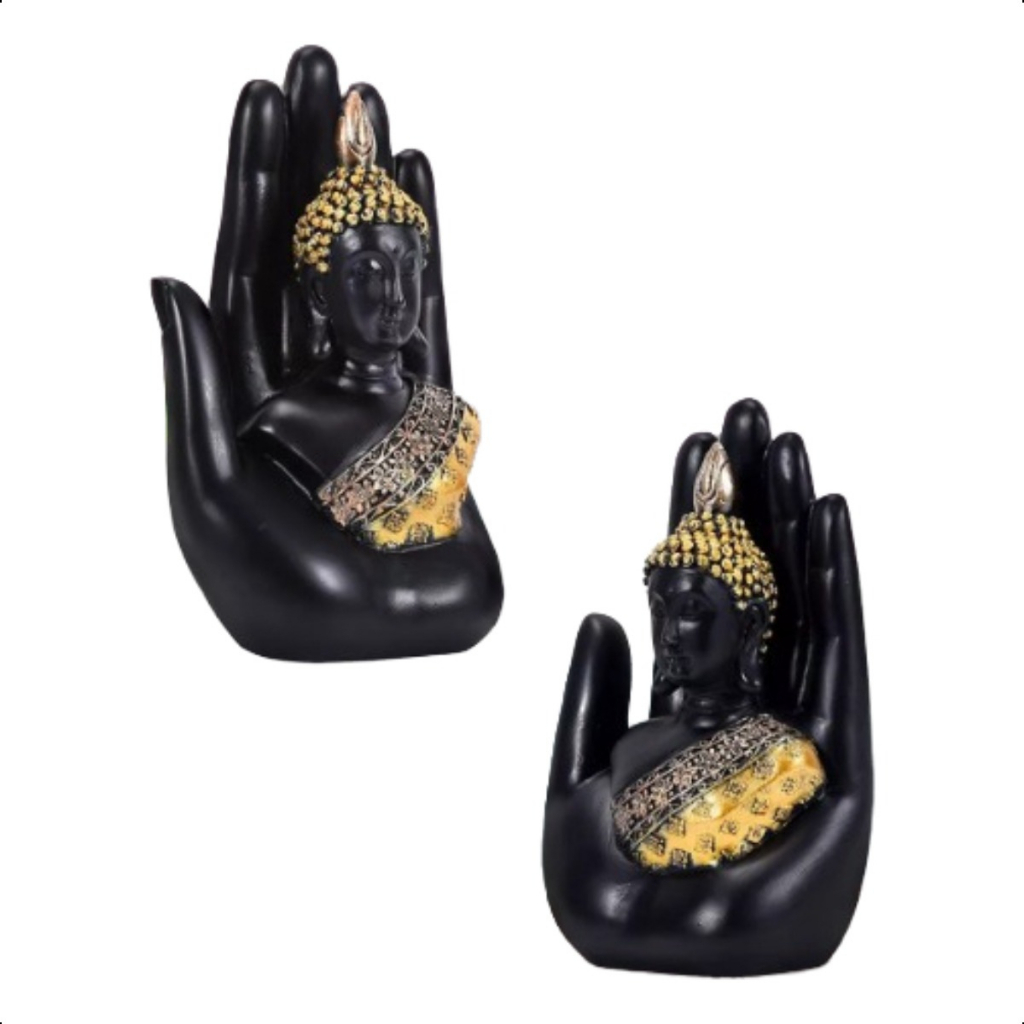 Estatueta Tailandesa Buda Preto Mão De Buda 20,5cm