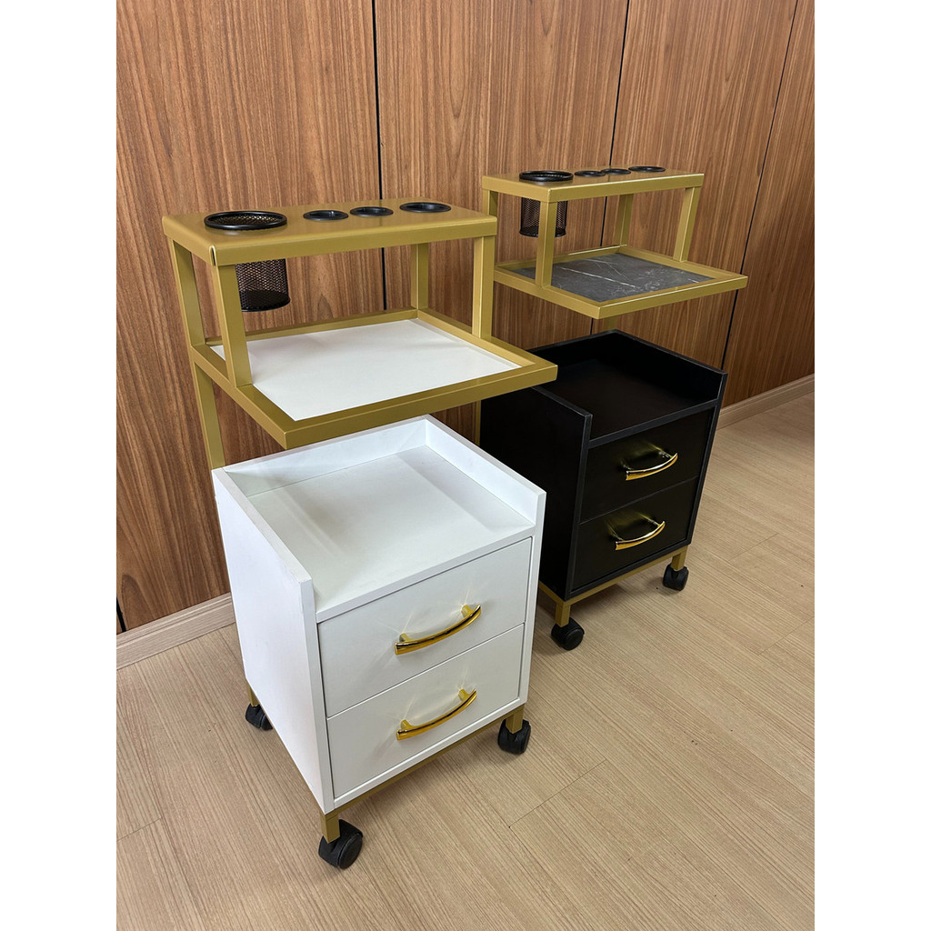 Carrinho Auxiliar Para Salão De Beleza Cor Dourado