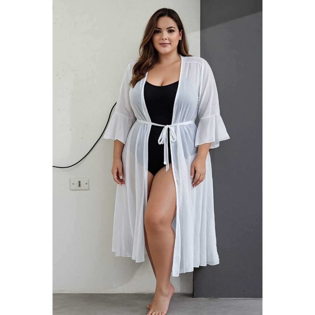 Saída de praia plus size Kimono média moda feminino têndencia 2025 Praia Plus size Saida de praia media manga 3/4