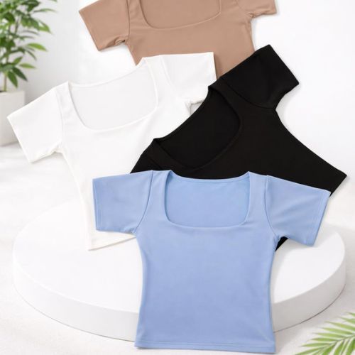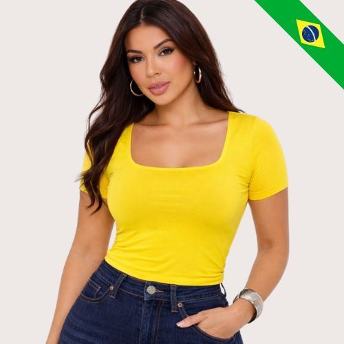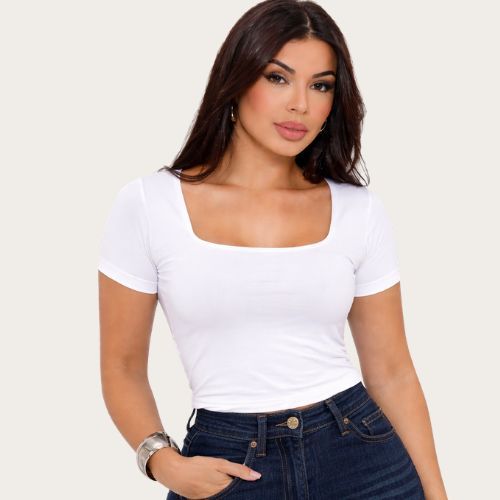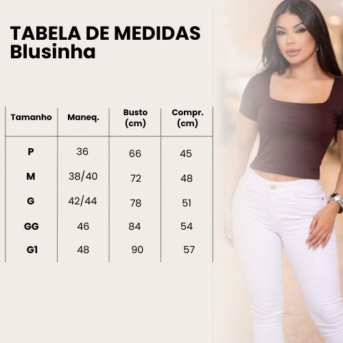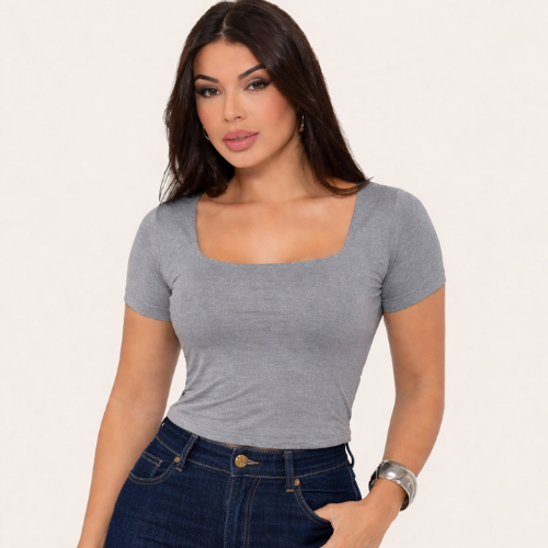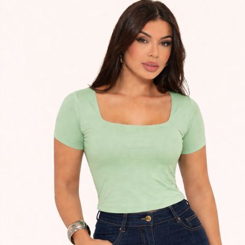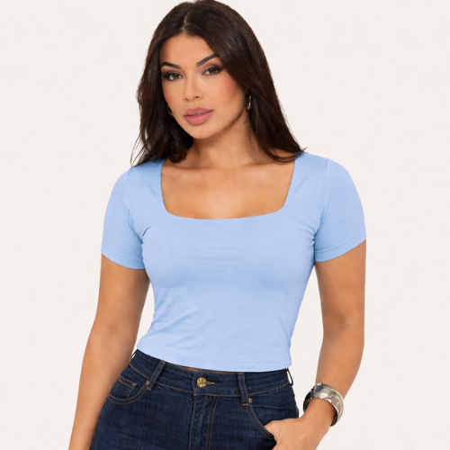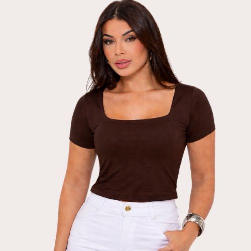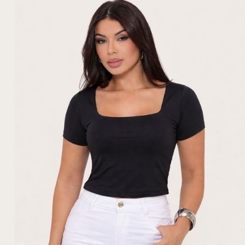 Blusa Feminina Manga Curta Baby look Decote Quadrado Suplex Premium Forro Duplo Blusinha Blogueira
