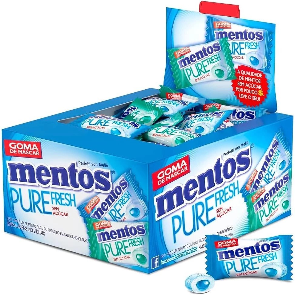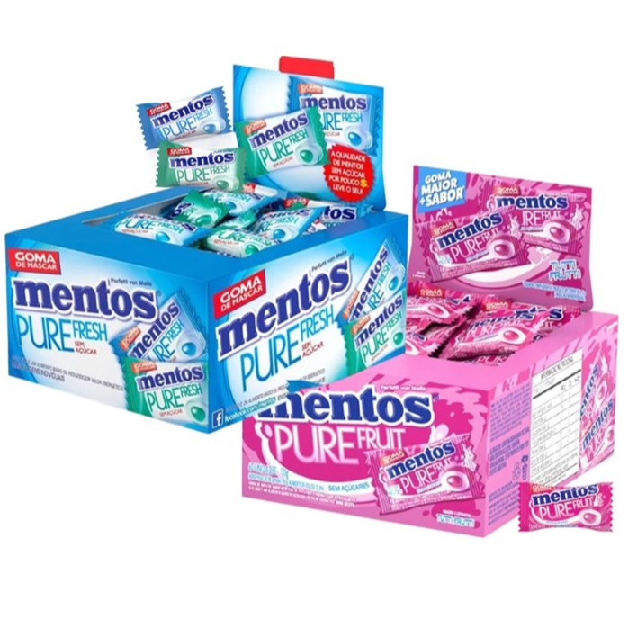 Caixa Chiclete goma de mascar Mentos Monopeça Pure Fresh Sortido embalado Com 60 unidades Peças