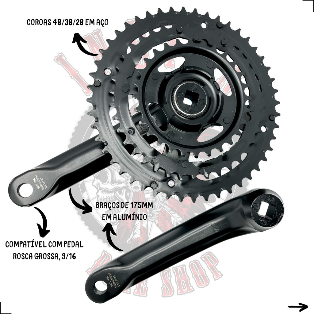 PEDIVELA SHIMANO TOURNEY FC-TY301 175MM PONTA QUADRADA - COROAS 48/38/28 - 3X7V / 3X8V