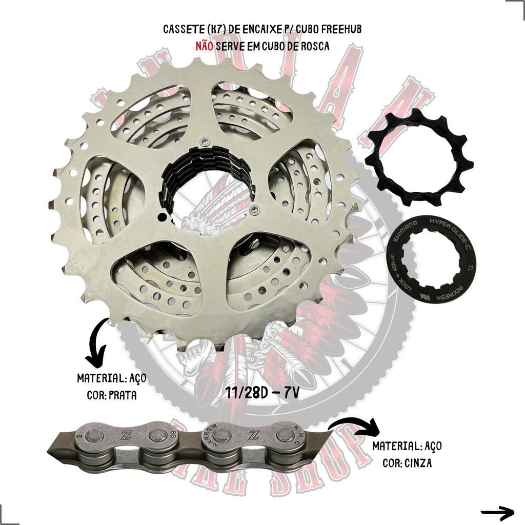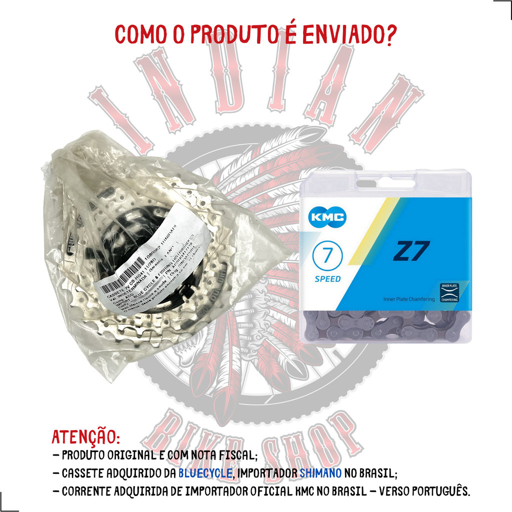 CASSETE 7V SHIMANO CS-HG41 11/28D + CORRENTE KMC Z7 CINZA 116 ELOS COM PINO - URBANO / ROAD