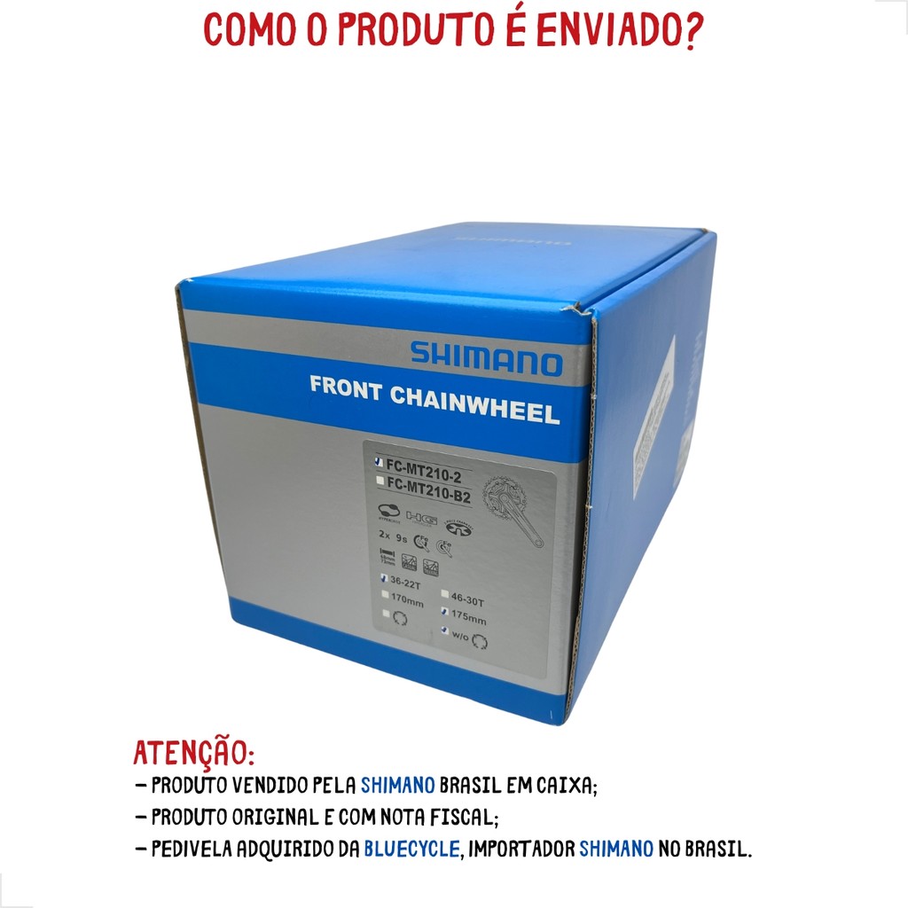 PEDIVELA DUPLO SHIMANO FC-MT210-2 INTEGRADO COROAS 36/22D BRAÇO 175MM SEM MOVIMENTO - 2X9V MTB
