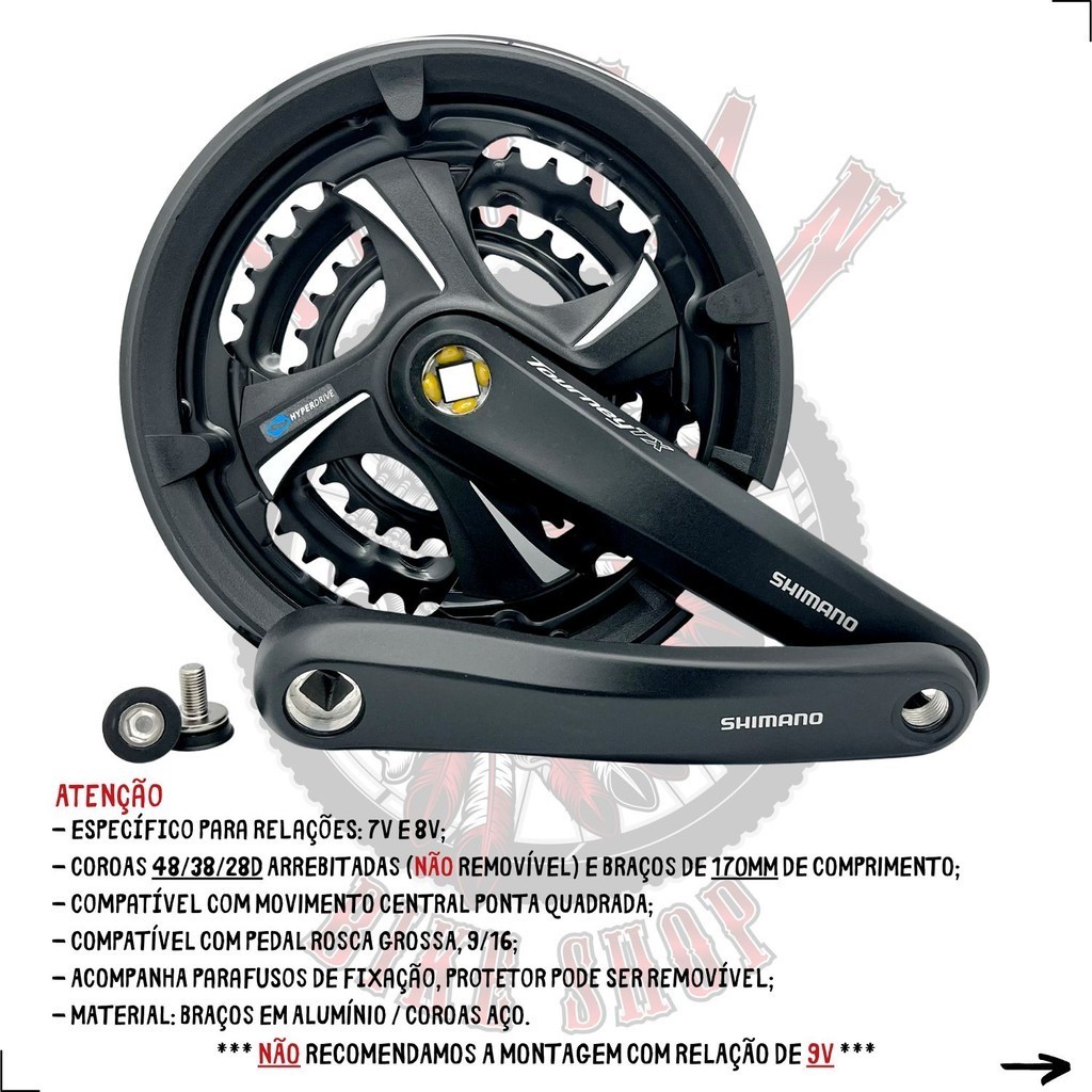 PEDIVELA SHIMANO TOURNEY TX FC-TX801 170MM PONTA QUADRADA - COROAS 48/38/28D - 3X7V / 3X8V – COM PROTEÇÃO P/ CORRENTE