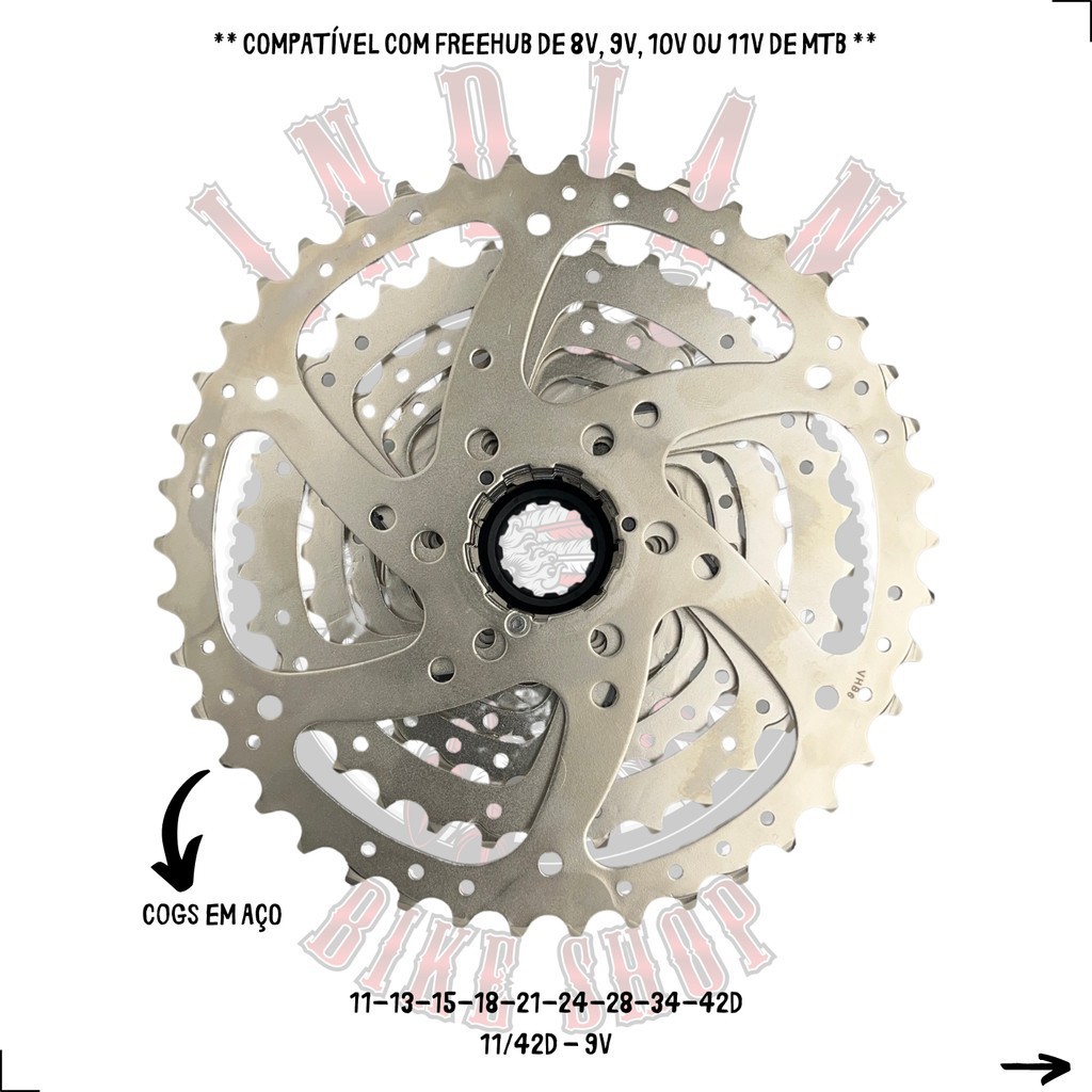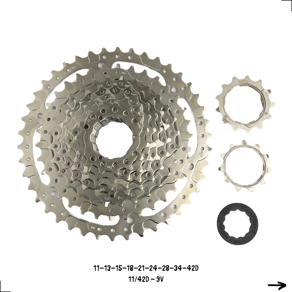 CASSETE 9V SUNRACE M980 9V 11/42D - PRATA