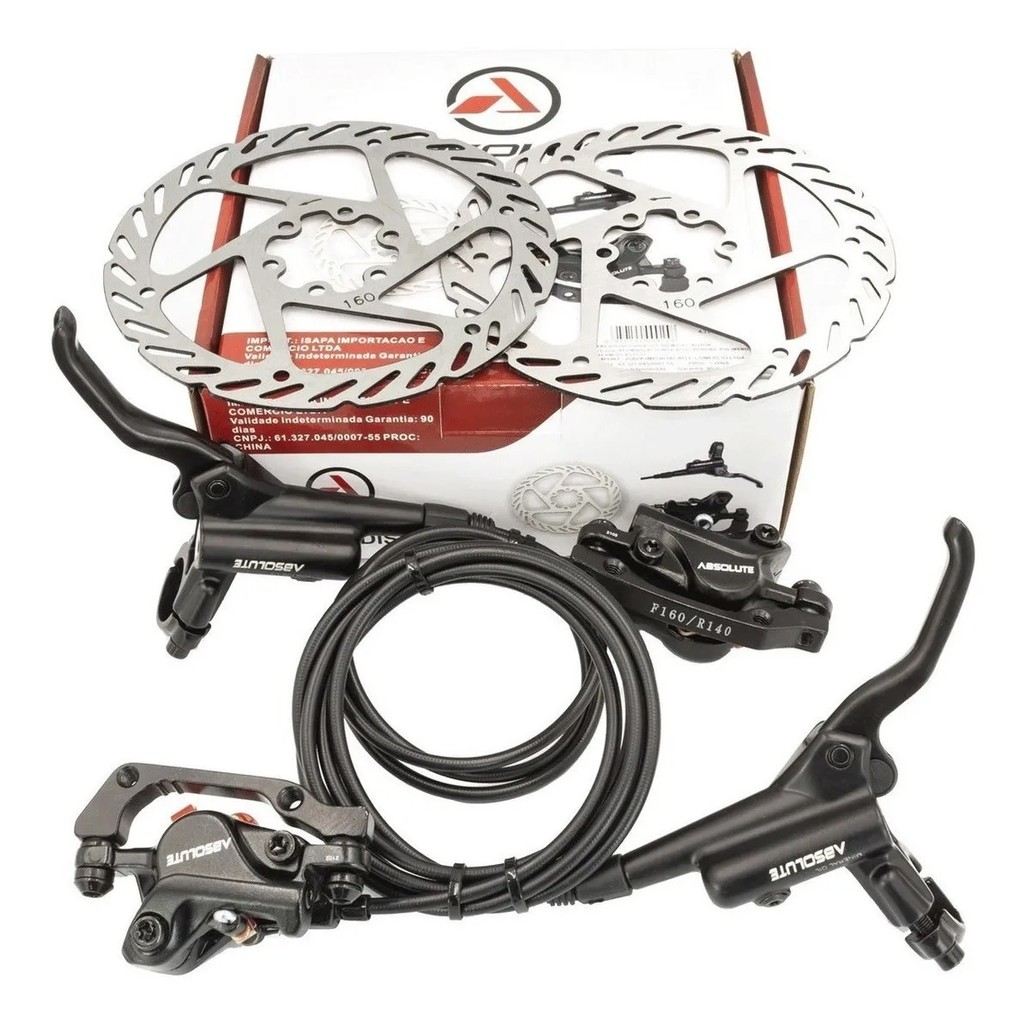 PAR FREIO HIDRÁULICO ABSOLUTE M220 C/ DISCOS DE 6 PARAFUSOS 160MM - PRETO