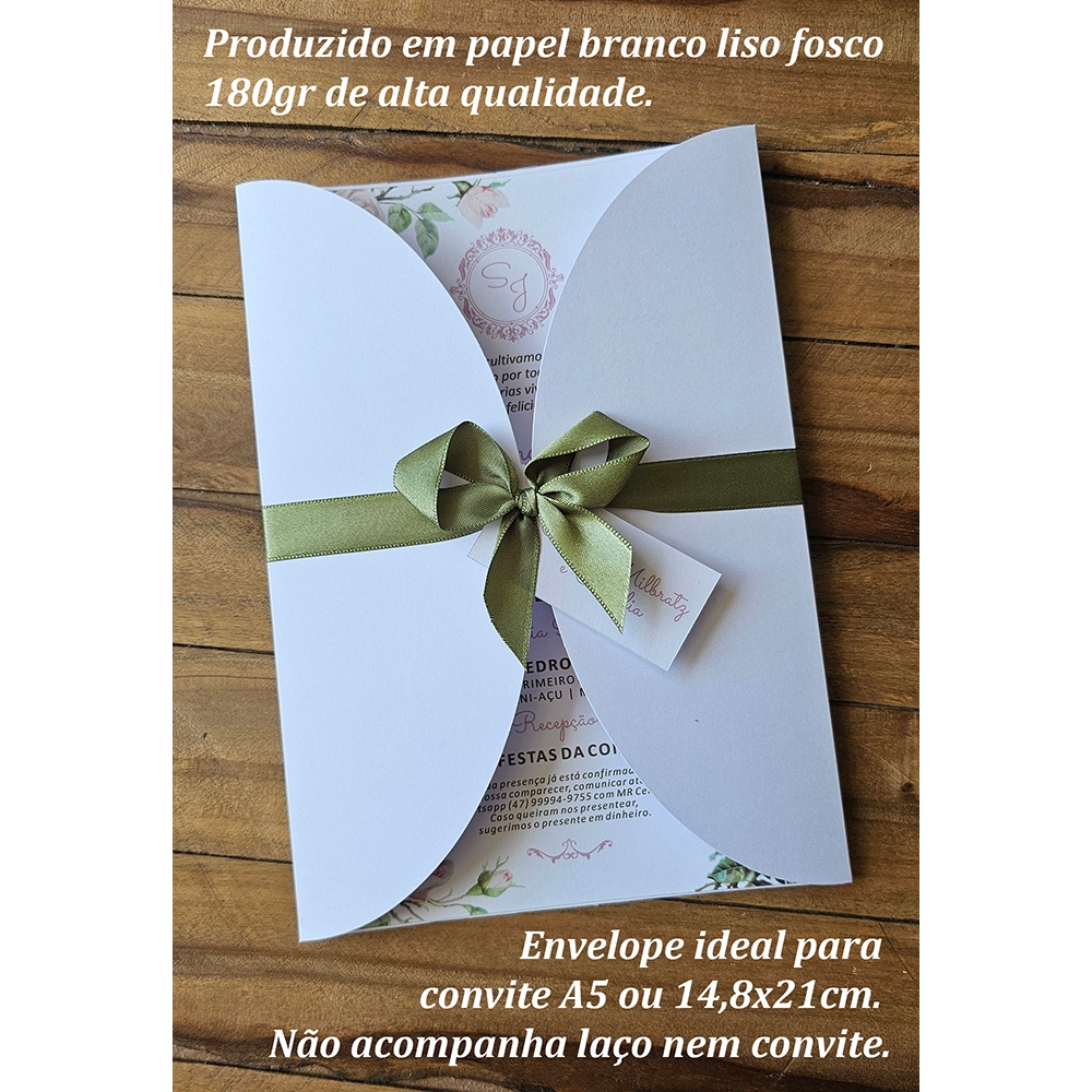 Envelope Redondo 15x21cm - 30 peças Branco Liso Fosco 180gr para Convite de Casamento Barato
