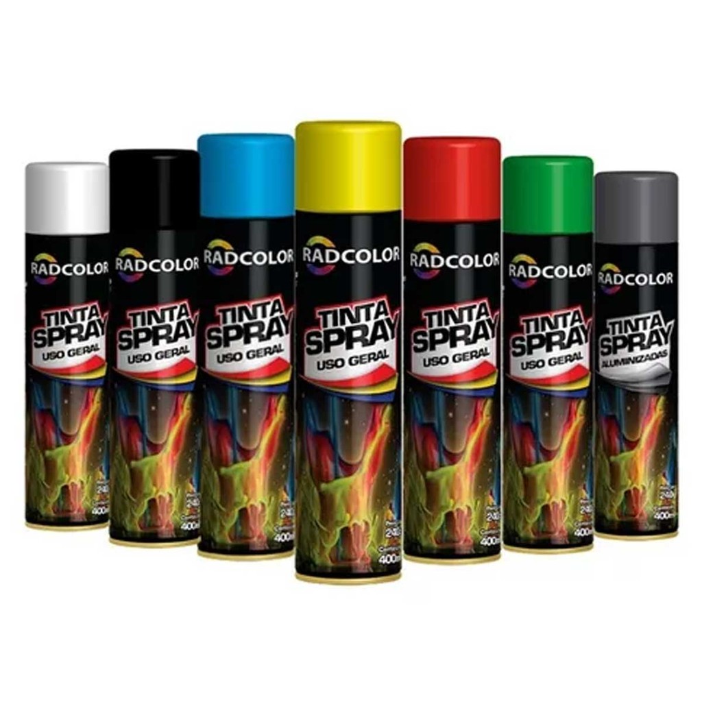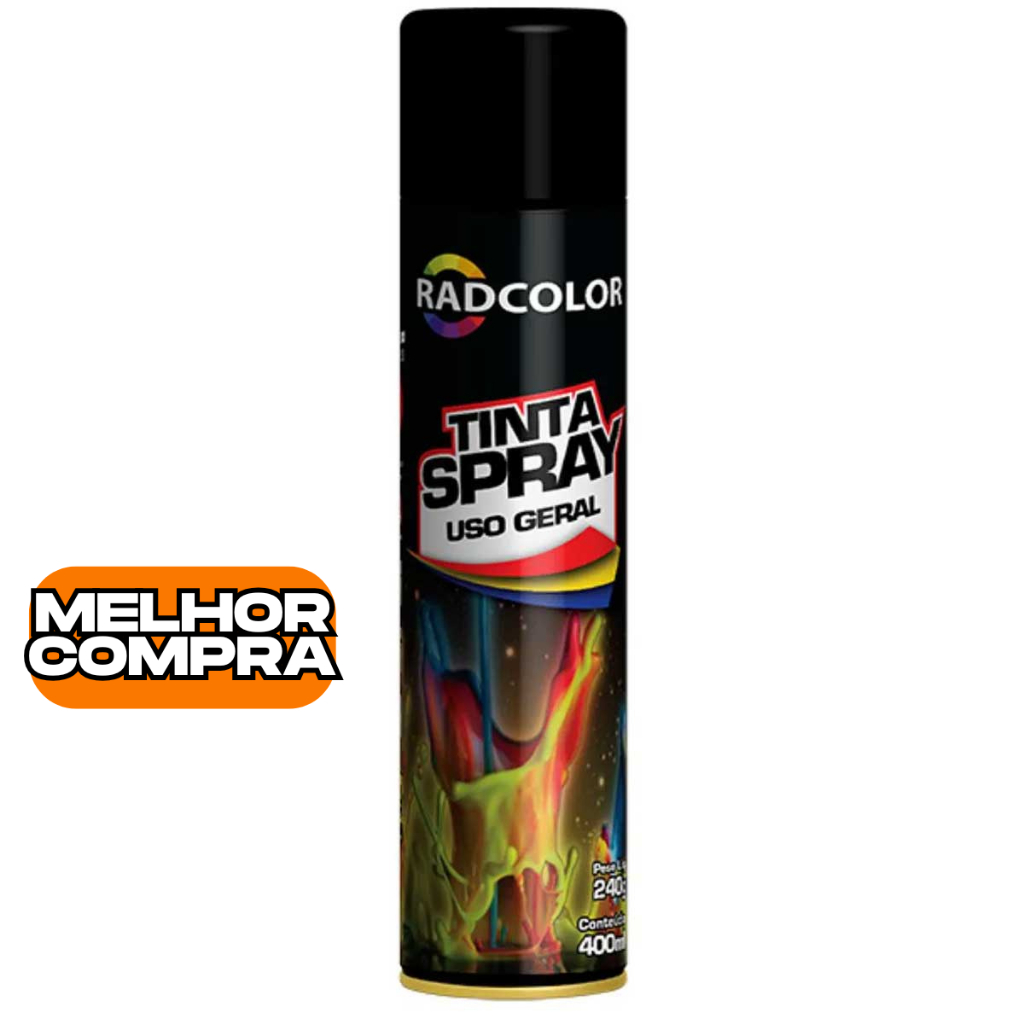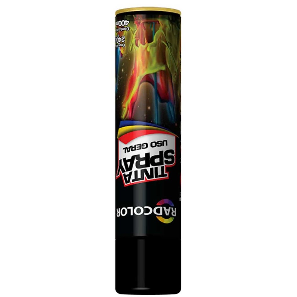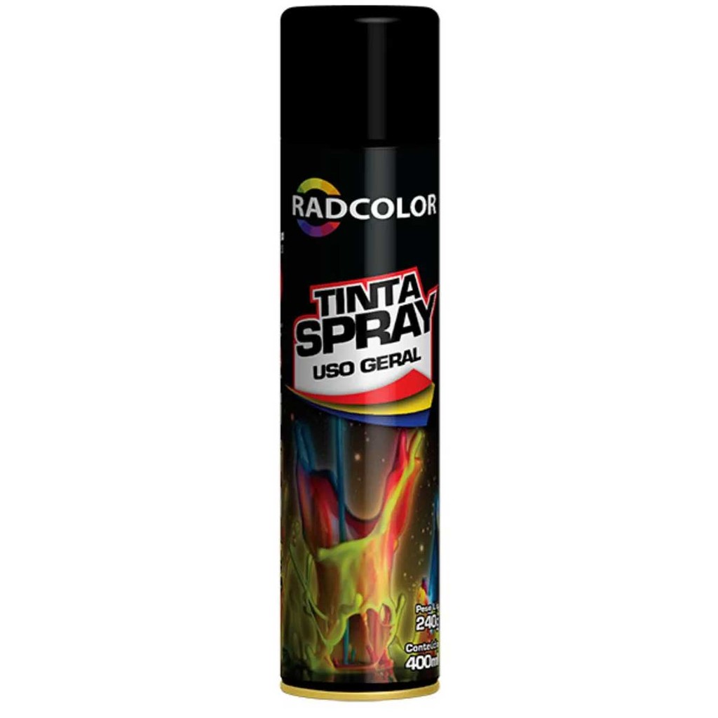 Tinta Spray Preto Brilhante Uso Geral Secagem Rápida Radcolor 400ml RC2101