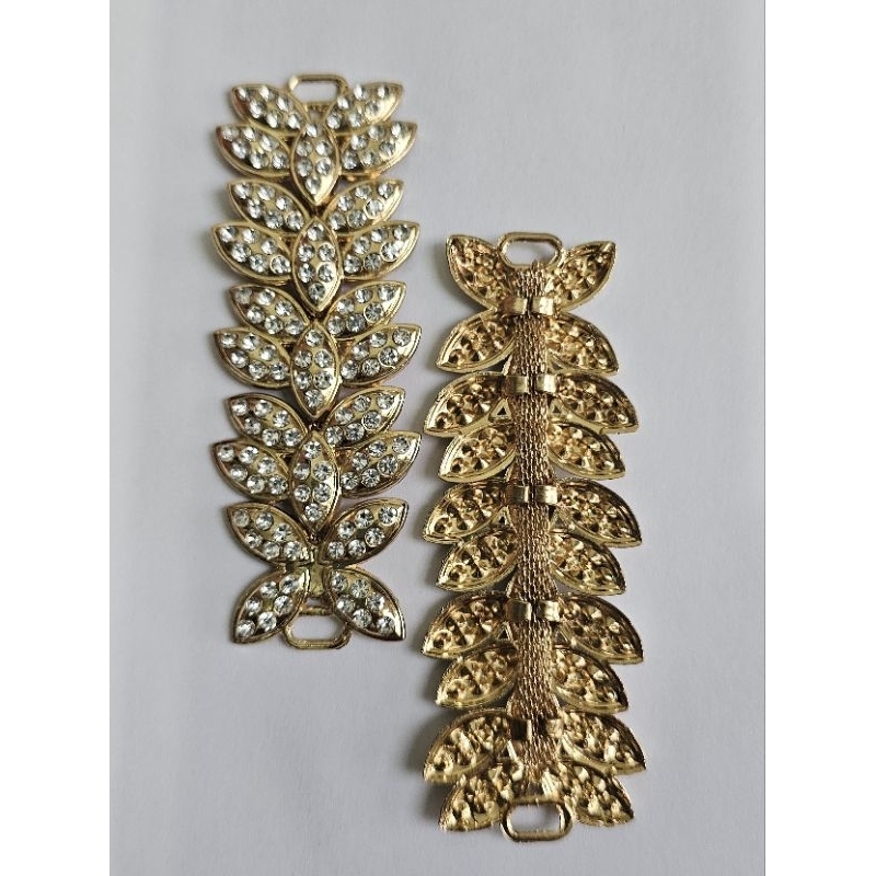 peça lateral metal folhagem com strass vendido por (par)