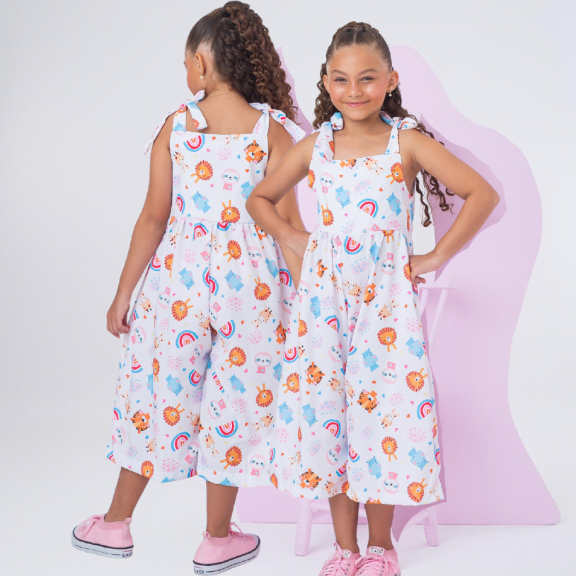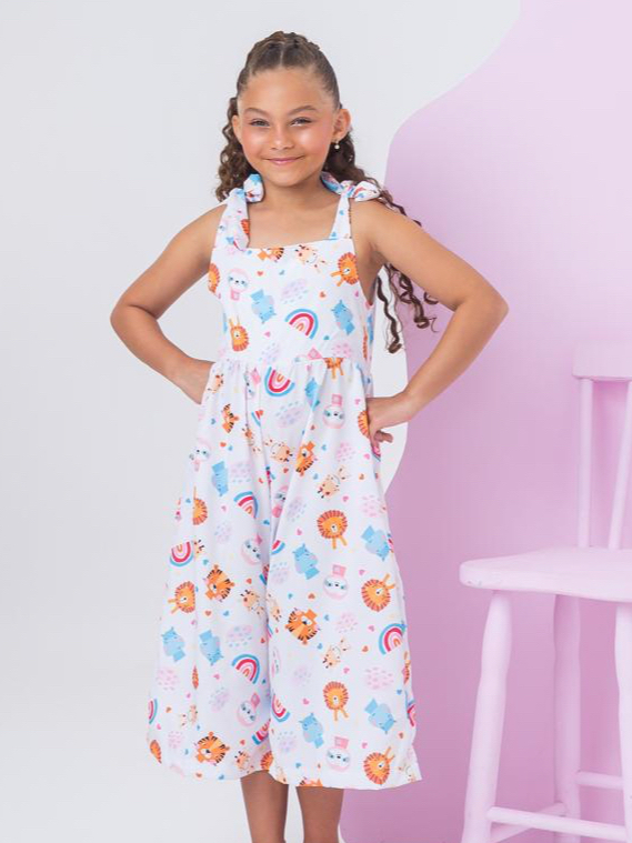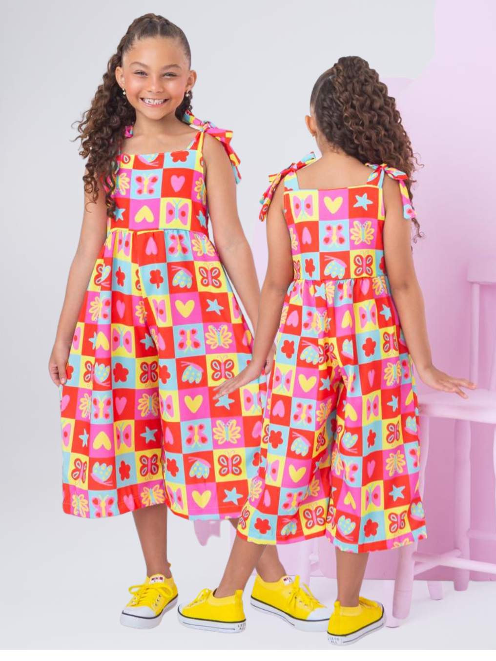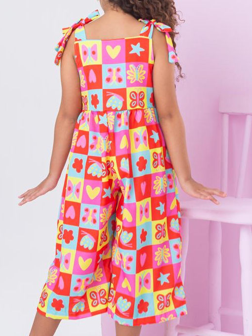 Macacão PantaJuvenil Menina Moda Amarração no Ombro Colorido Confortável lançamento