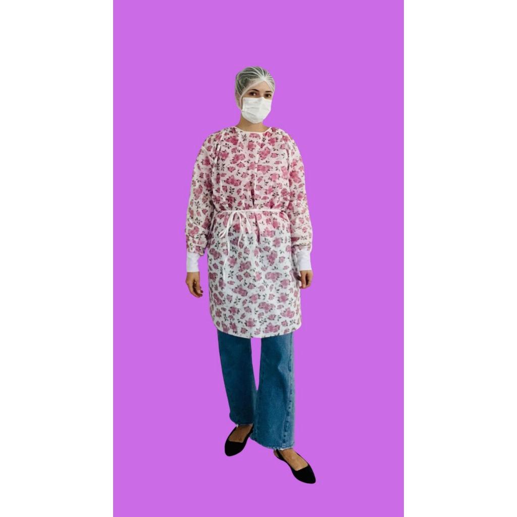 Avental Manga Longa de Rosas 40g/m² - pacote com 02
