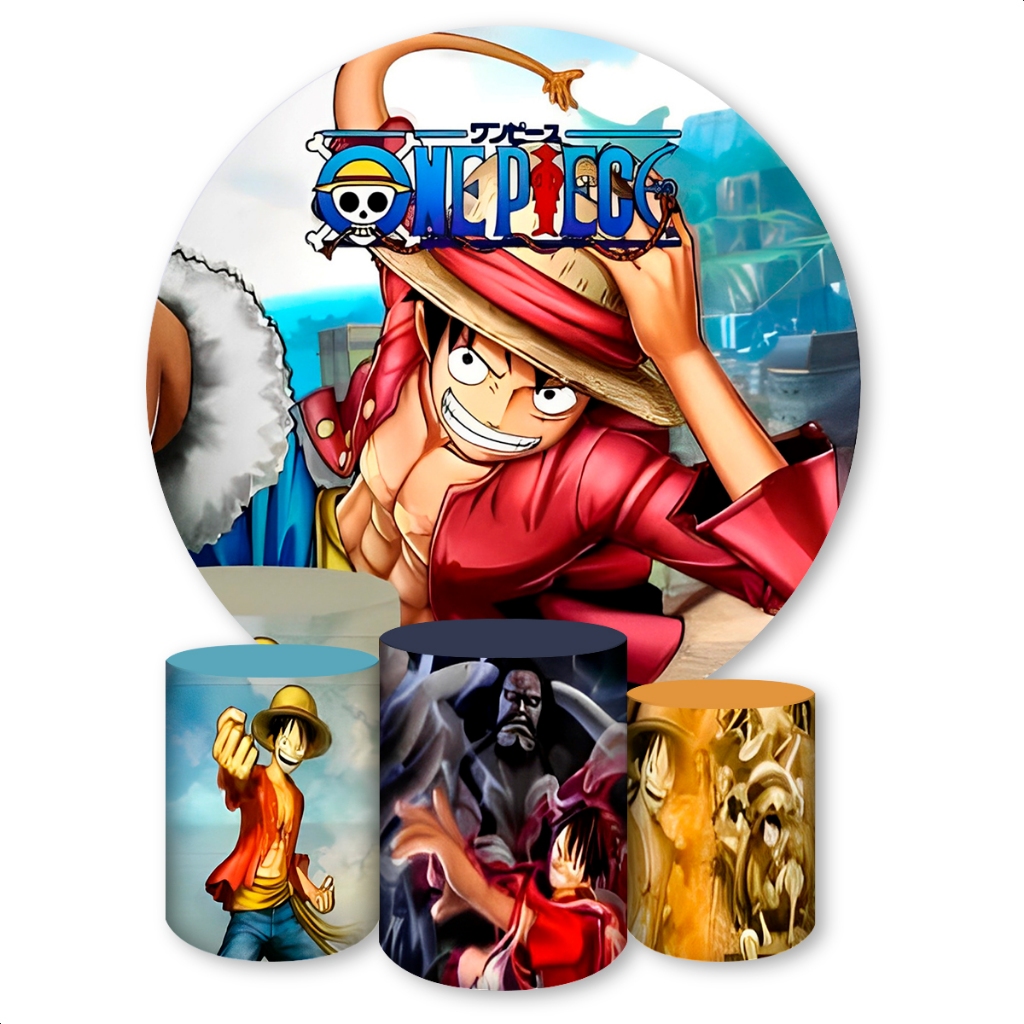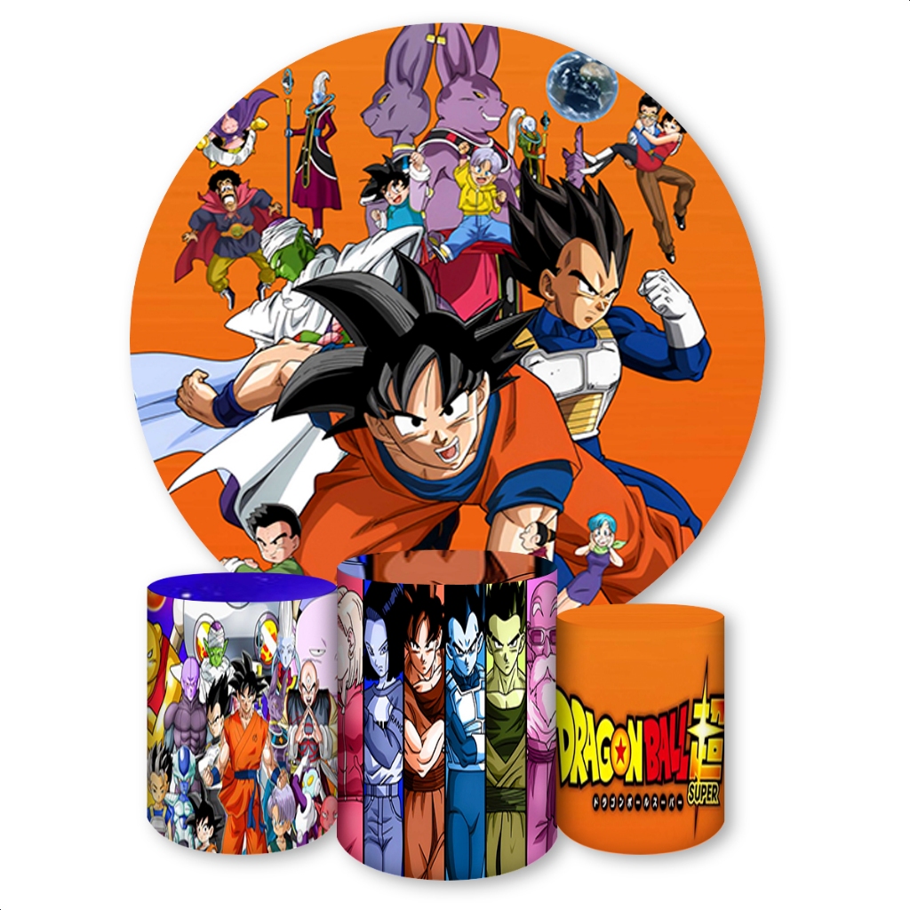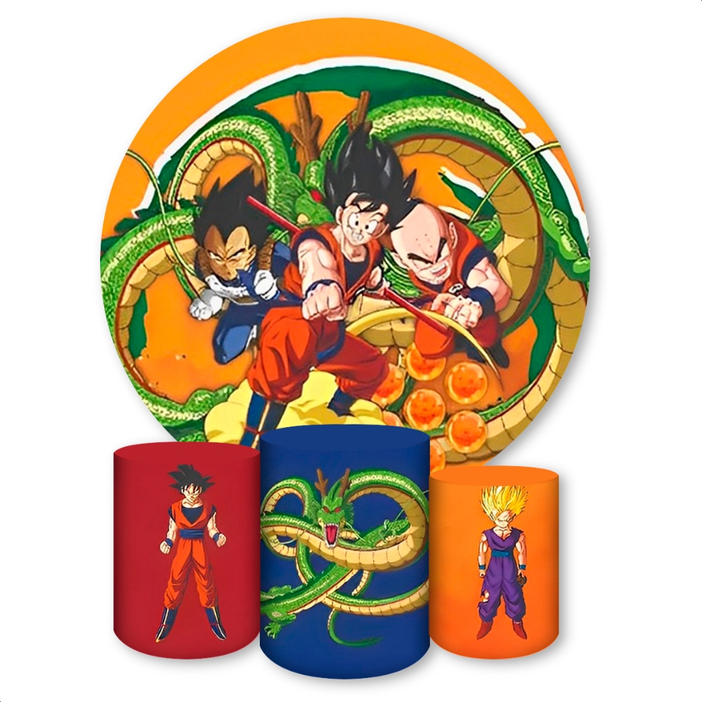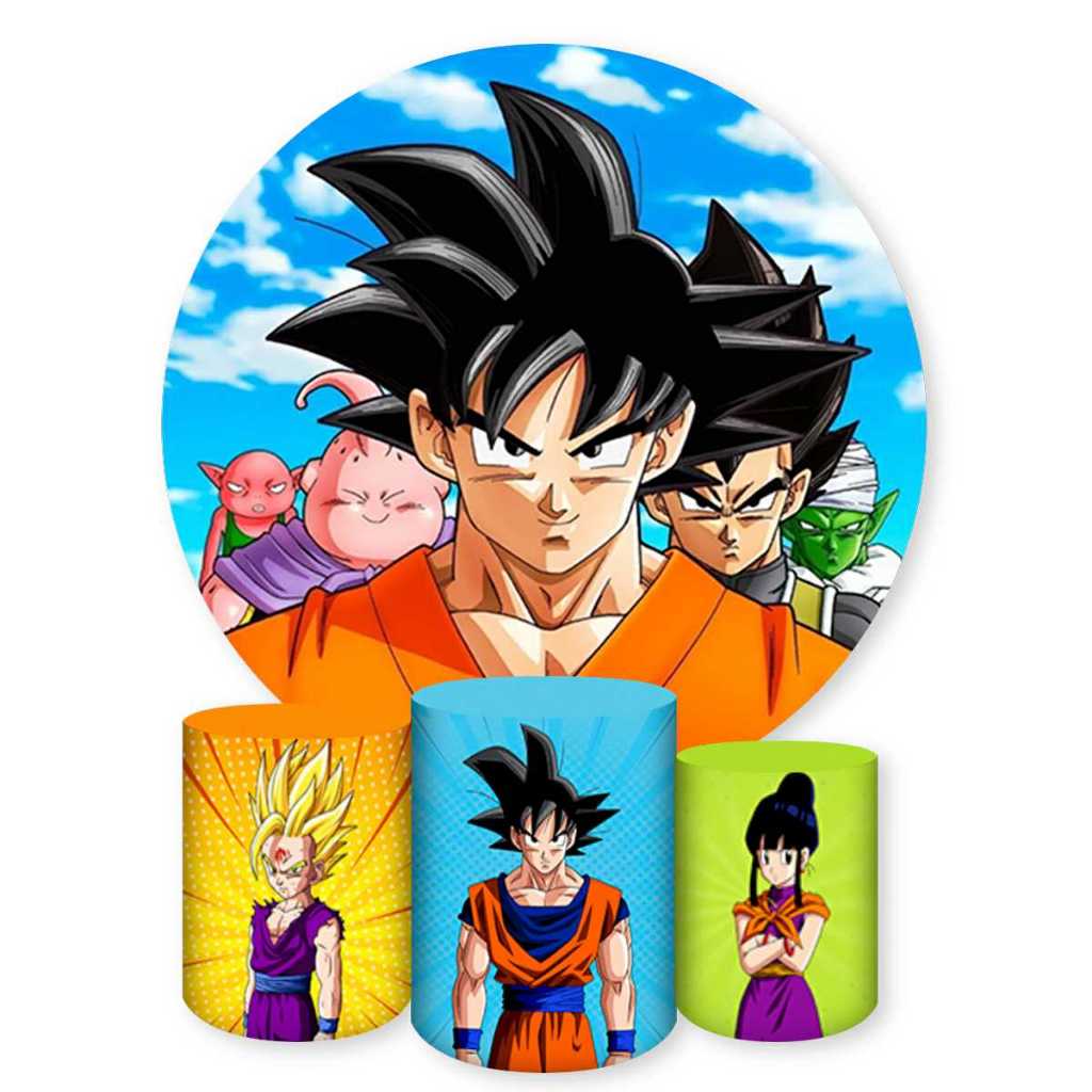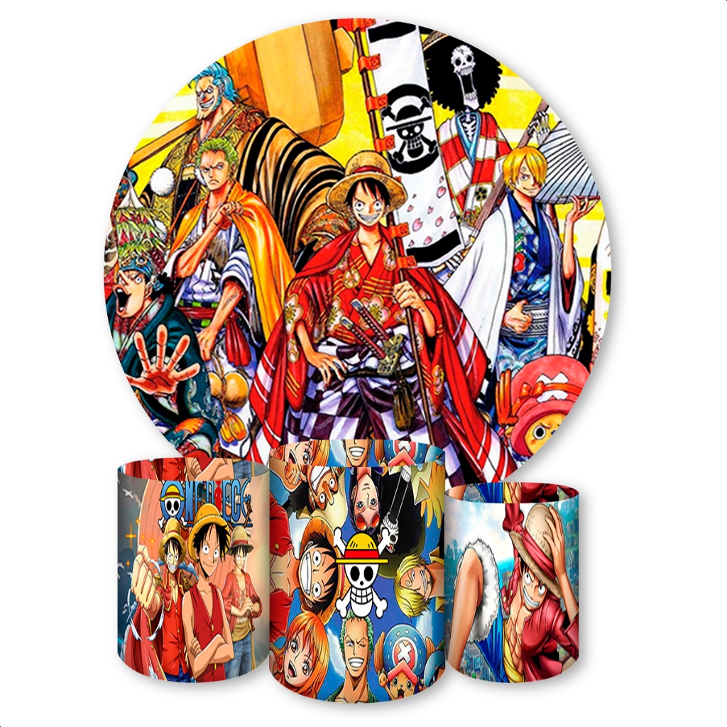 Capa Painel Redondo + Capas de Cilindro Sublimados Veste Fácil Para Festas Tema Animes Diversos