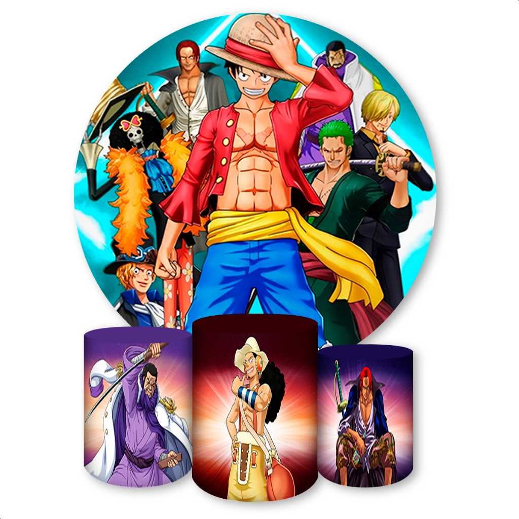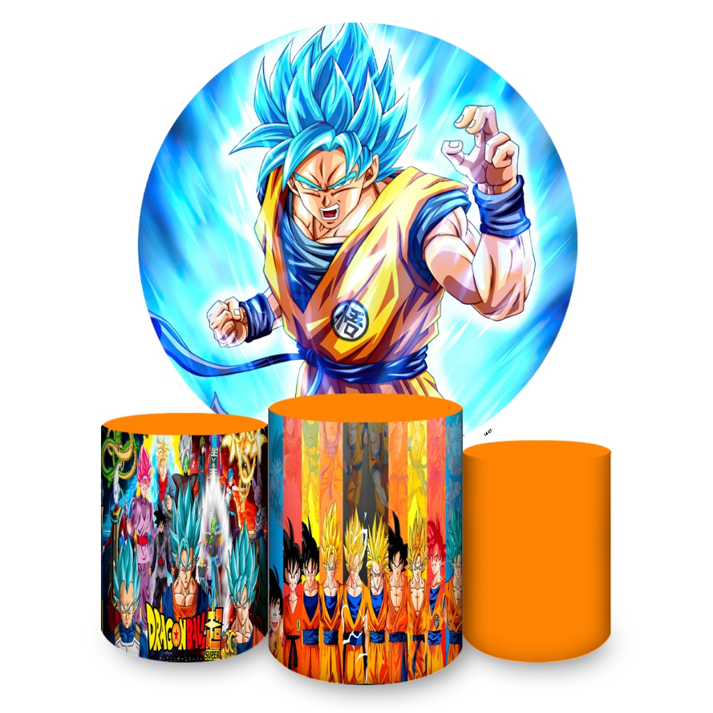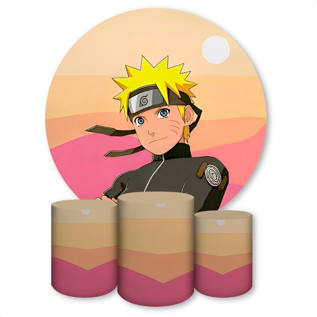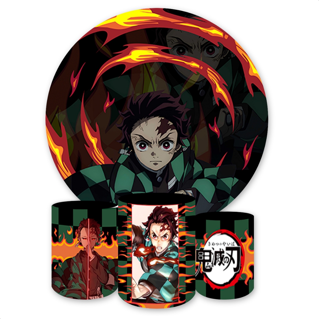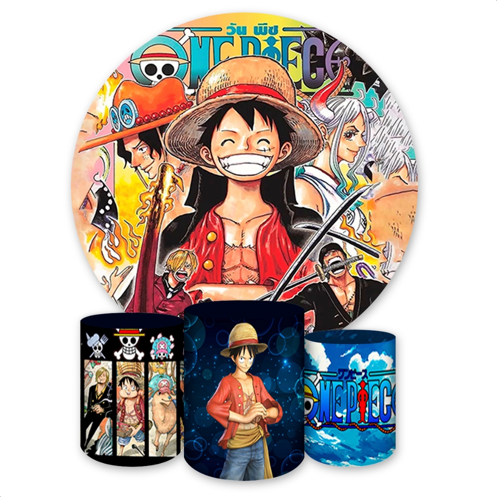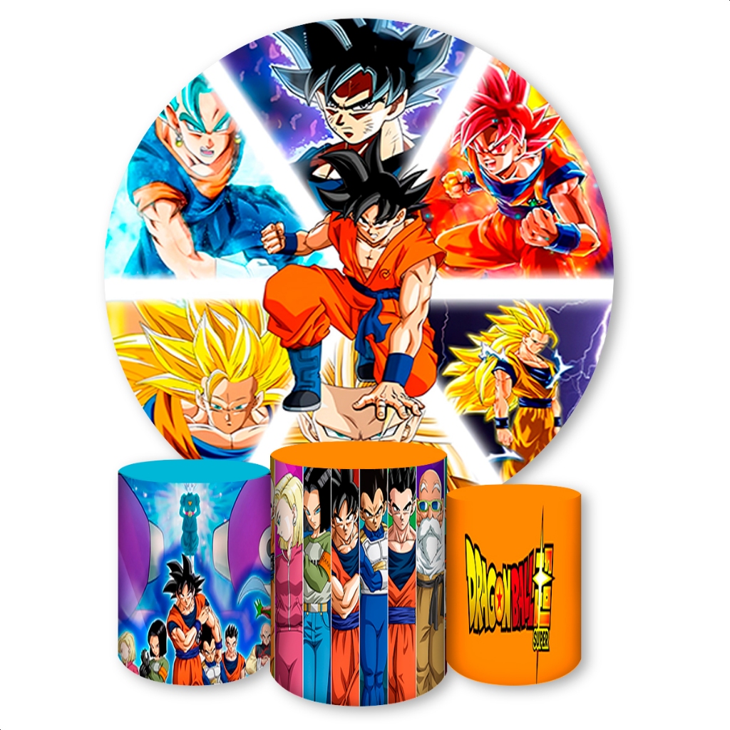 Capa Painel Redondo + Capas de Cilindro Sublimados Veste Fácil Para Festas Tema Animes Diversos